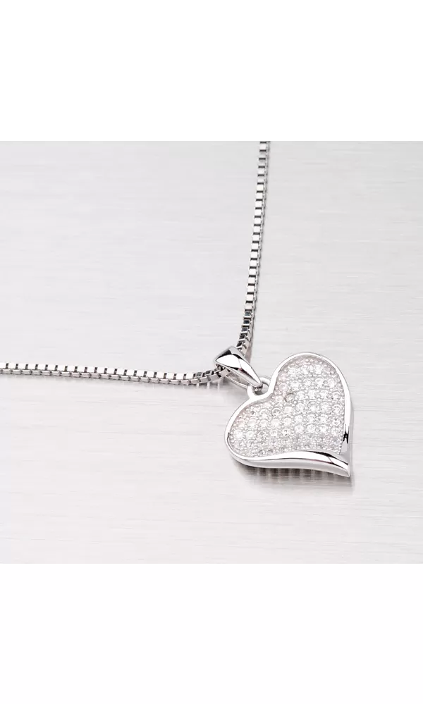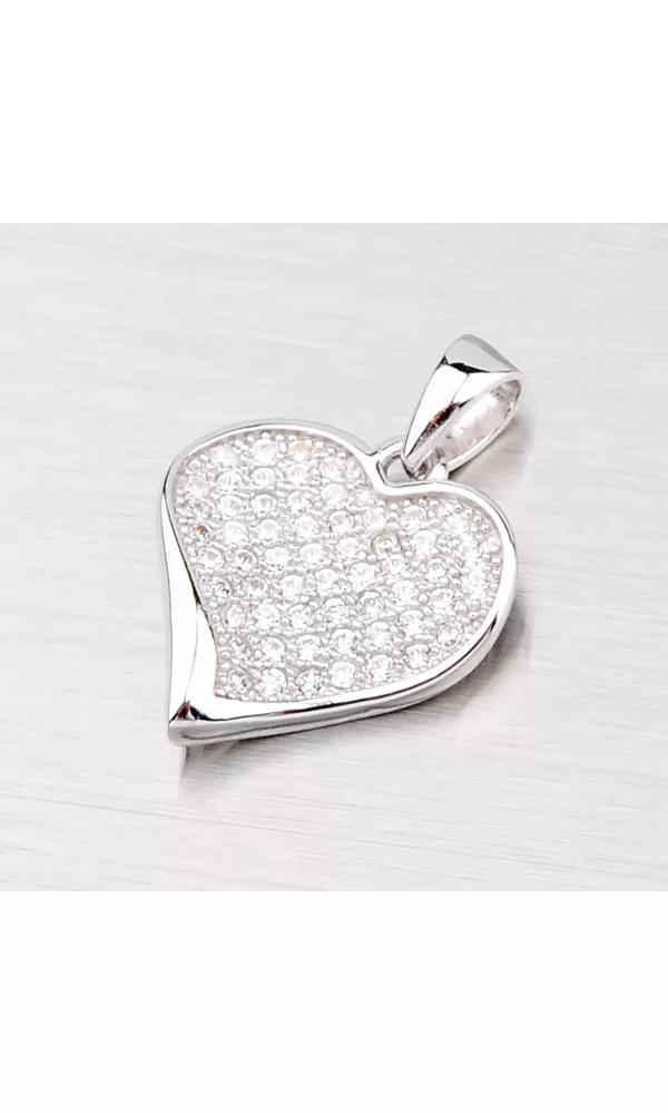 Jemný elegantný prívesok v tvare srdiečka je vyrobený zo striebra rýdzosti 925/1000. Prívesok je vyrobený v lesklej povrchovej úprave a je ozdobený bielymi drobnými zirkónmi, ktoré sú do šperky zasadené technikou microsetting. K tomuto prívesku je vhodné použiť retiazku s priemerom max. 1,75 mm.