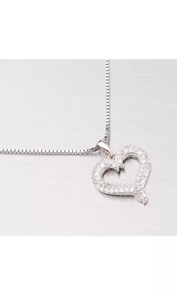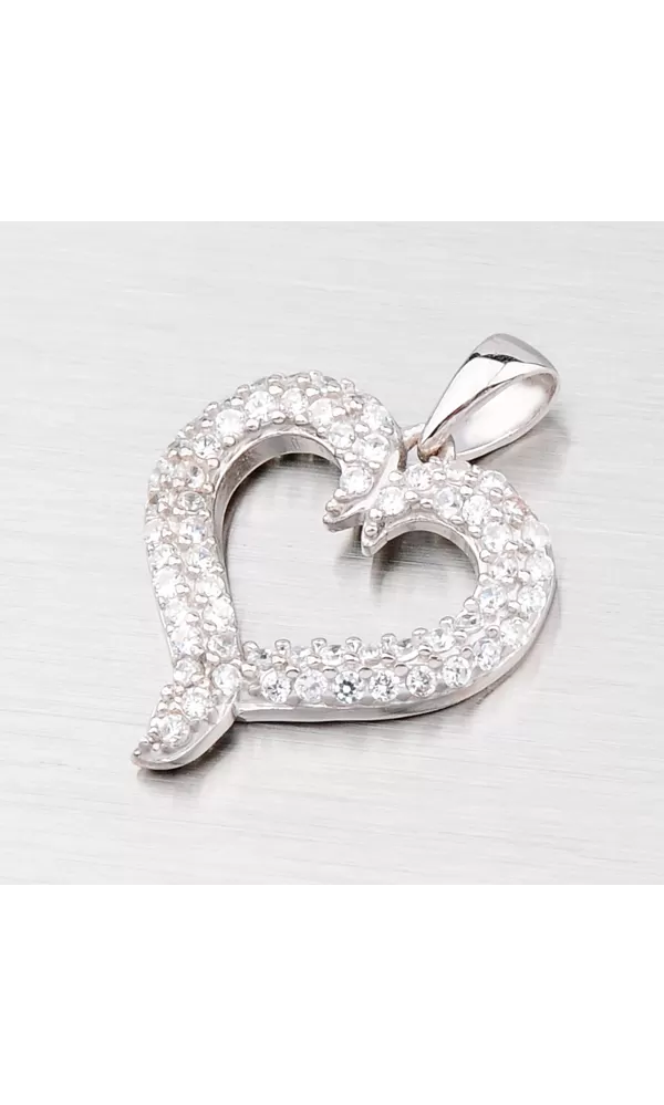 Krásny prívesok v tvare srdca je vyrobený zo striebra rýdzosti 925/1000. Prívesok je vyrobený v lesklej povrchovej úprave a je ozdobený bielymi drobnými zirkónmi, ktoré sú do šperky zasadené technikou microsetting. K tomuto prívesku je vhodné použiť retiazku s priemerom max. 2,25 mm.