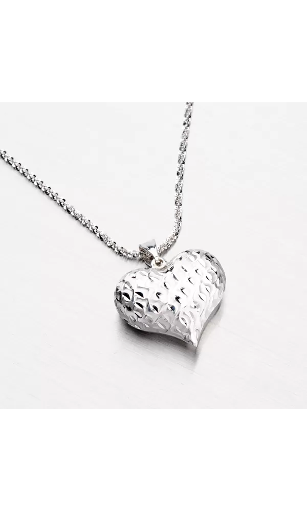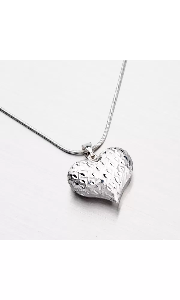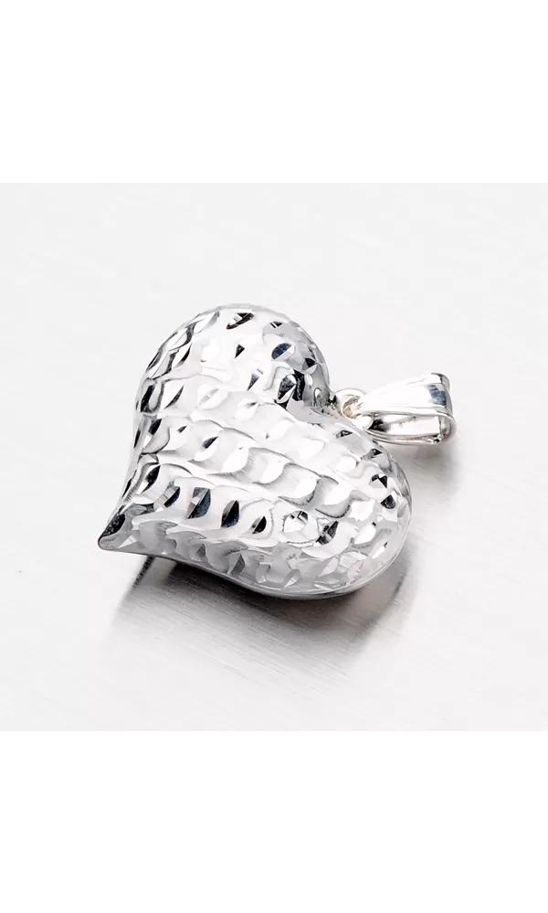 Prívesok v tvare srdca nikdy nesklame. Každá žena bude mať radosť keď dostane darčekom tento prívesok. Tento prívesok v tvare srdca je veľký ale dutý, takže nie je ťažký. Je zdobený diamantovým gravírovaním, kde diamantový hrot rýbacieho nástroja zaisťuje neuveriteľne vysoký lesk. Dá sa nosiť aj druhé strany, ktorá je hladká a lesklá.