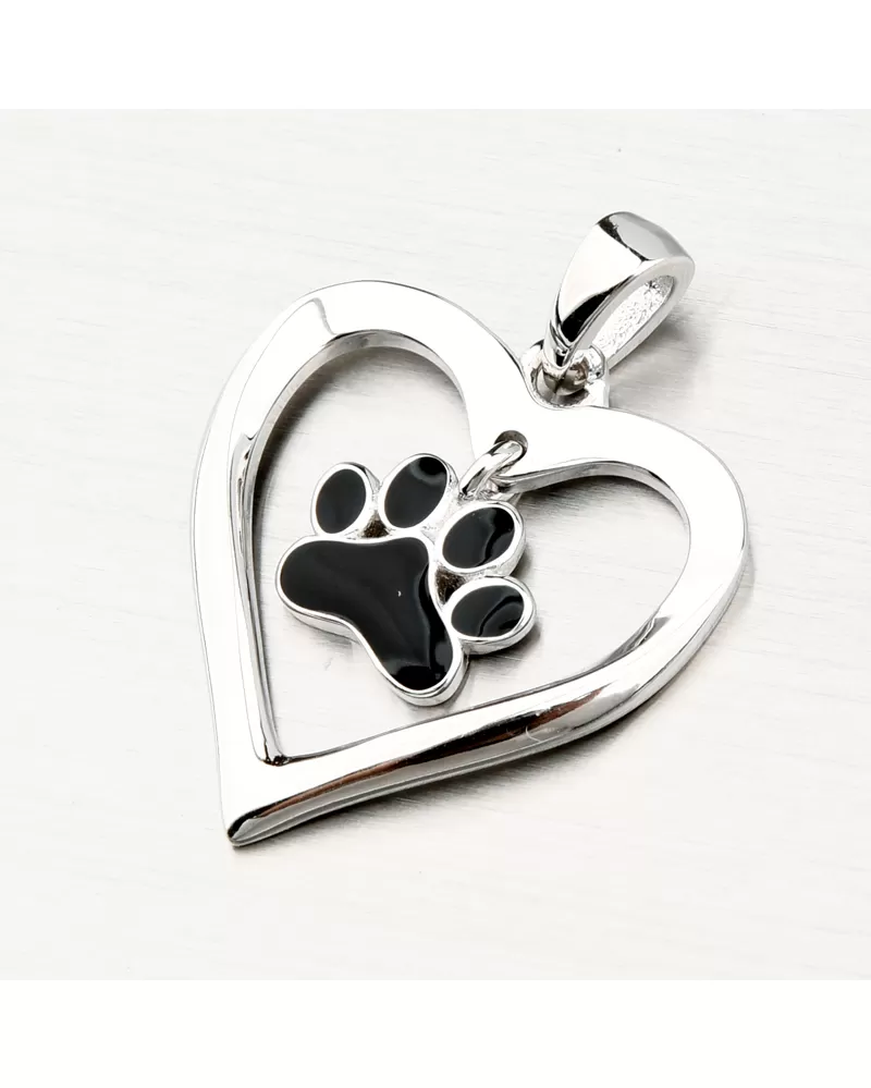 Tento strieborný prívesok zobrazuje vašu lásku k zvieratám. Prívesok je totiž v tvare srdca, ktoré je vo vysokom lesku a je zdobené roztomilým pohyblivým príveskom v tvare labky, ktorá je zvýraznená čiernym smaltom. Tento prívesok si zamilujete.
