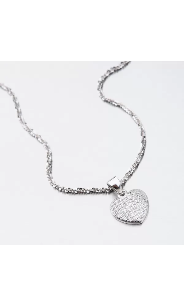 Žiarivý šperk, ktorý vám rozžiari dekolt. To je rozhodne tento prívesok v tvare srdca, ktorý je bohato zdobený zirkónmi v briliantovom bruse. > v lesklej povrchovej úprave a povrch prívesku je zušľachtený rhodiovaním.