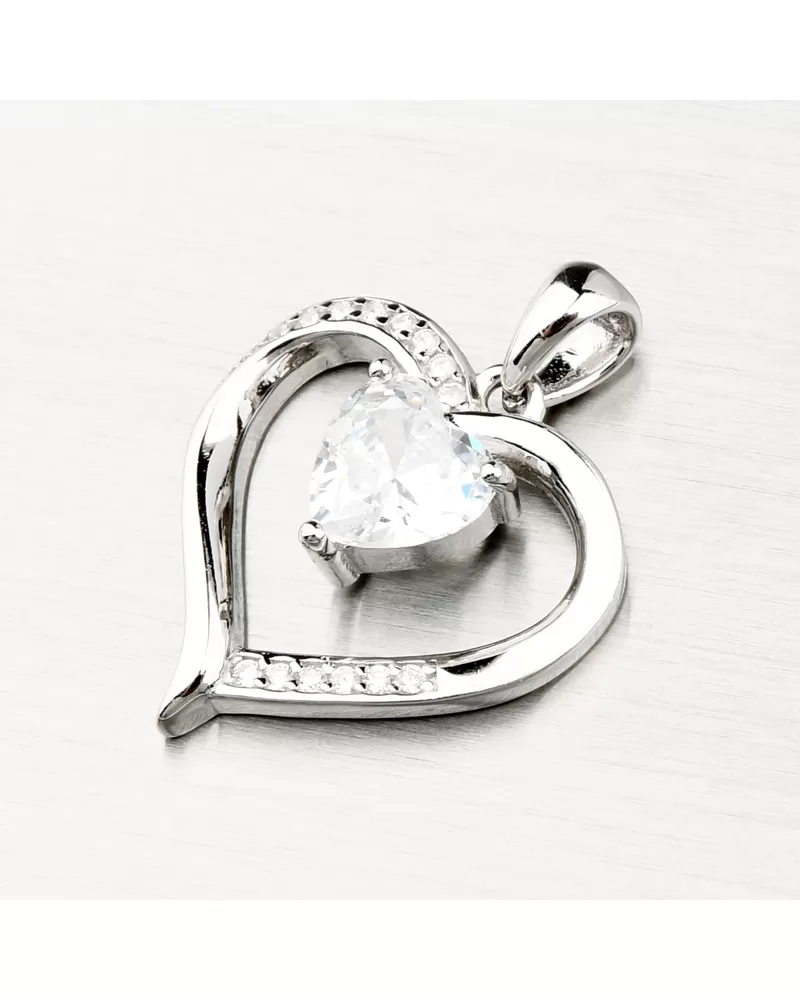 Ideálny darček pre vašu drahú polovičku, ktorej týmto príveskom dokážete svoju lásku. Prívesok je v tvare srdca, ktoré je čiastočne osadené zirkónmi briliantového brusu. Tento brus zaisťuje maximálnu brilanciu vybrúsených facet, dokonale odráža svetlo a neuveriteľne žiari z každého uhla pohľadu. Navyše je v strede prívesku výrazný zirkón v tvare srdca upevnený pomocou troch krapien. Tento prívesok si zamilujete.