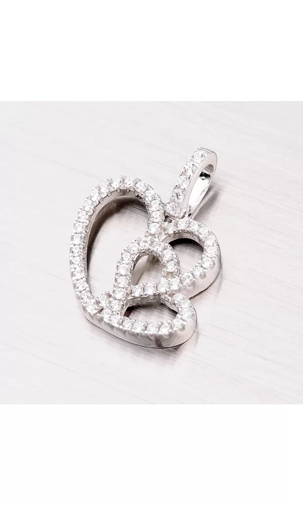Čo je lepšie ako darovať žene srdce? S týmto príveskom zaručene potešíte! Tento prívesok v tvare dvoch prepojených sŕdc je vyrobený z rhodiovaného striebra rýdzosti 925/1000 v lesklej povrchovej úprave. Obe srdcia sú vysadené blýskavými zirkónmi, ktoré prívesok nádherne rozžiaria. K prívesku je vhodná retiazka s priemerom max. 3 mm.