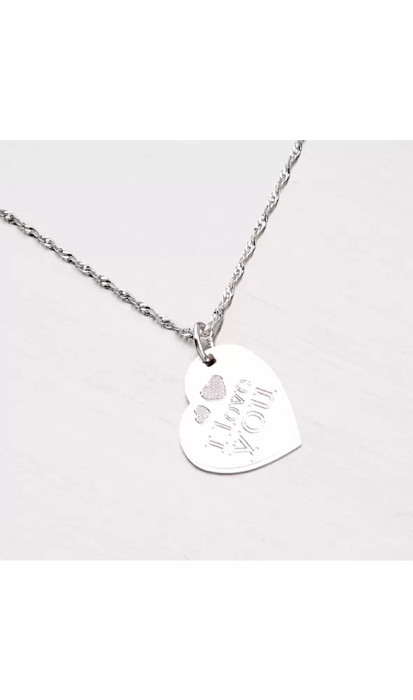 Moderný prívesok v tvare srdca bude ideálnym príveskom na vyjadrenie Vašej lásky. Na prednej strane prívesku sú ZADARMO vyryté dve srdiečka a text "I love you". Aj napriek tomu si môžete dať svoju vlastnú rytinu na zadnú stranu prívesku. Vyryť môžete nechať Vami vybraný text ako je napr. meno alebo písmeno. Opis rytiny prosím uveďte v kolónke špeciálne požiadavky. Srdiečko je v lesku a má lesklé bočné facety, ktoré sú zhotovené diamantovým nástrojom, ktorý zaisťuje ich maximálny lesk.