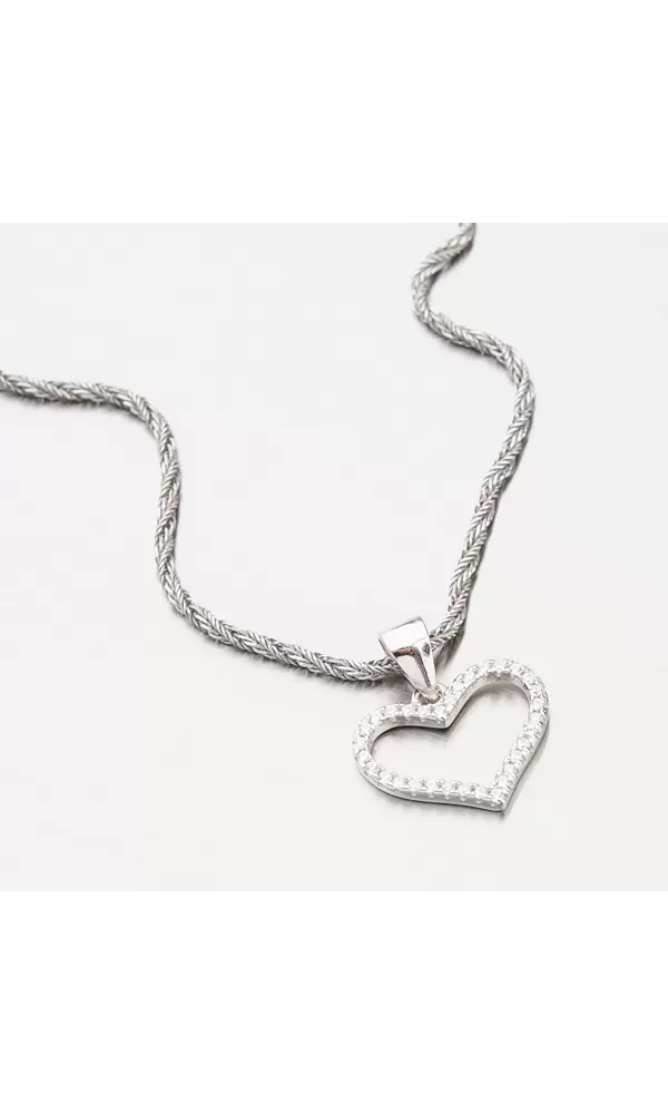 Krásny prívesok v tvare srdca vám dokonale ozdobí váš dekolt. Srdce je precízne vysadené zirkónmi v briliantovom bruse, ktorý zirkónom prepožičiava brilanciu pravých diamantov.