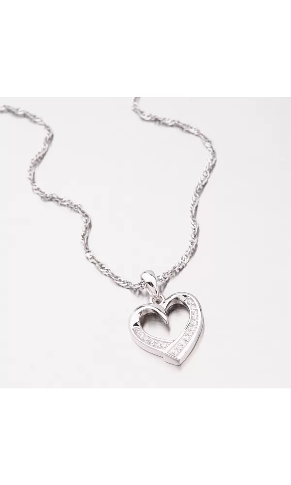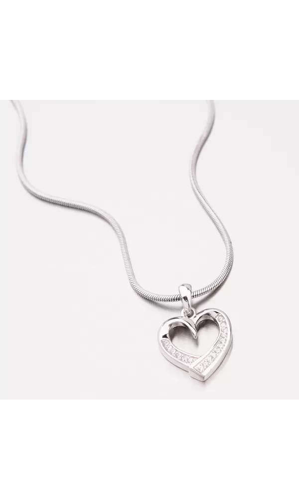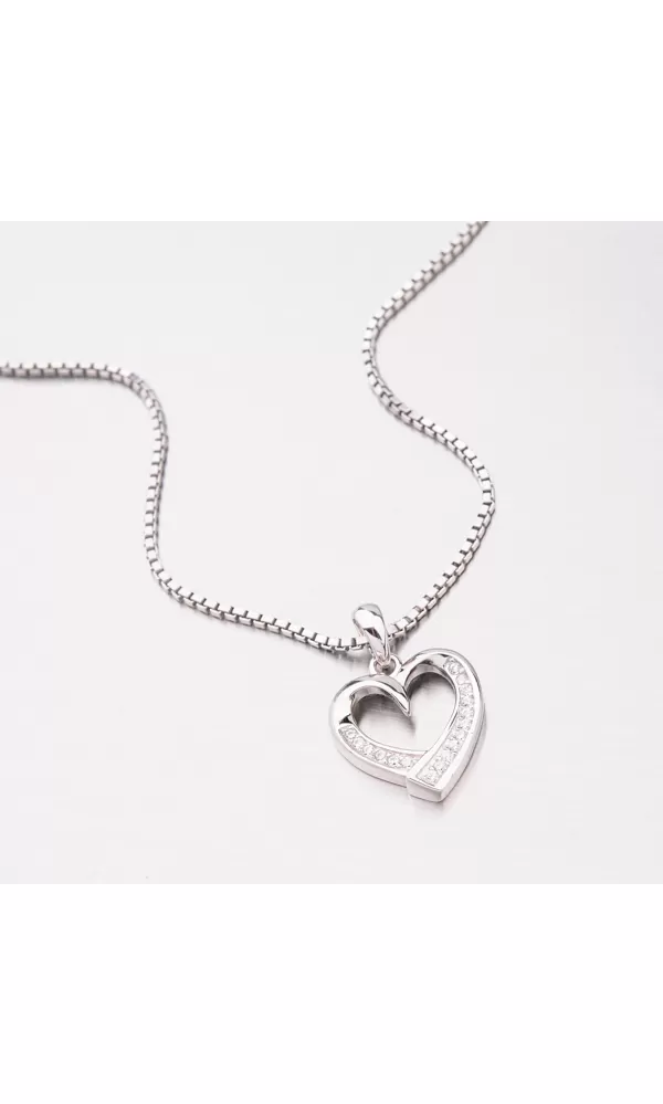 Decentný prívesok je tvare srdca vám jemne ozdobí dekolt. Prívesok je leštený do vysokého lesku a je zdobený zirkónmi v briliantovom bruse. Tento brús zaisťuje zirkónom brilanciu pravých diamantov.