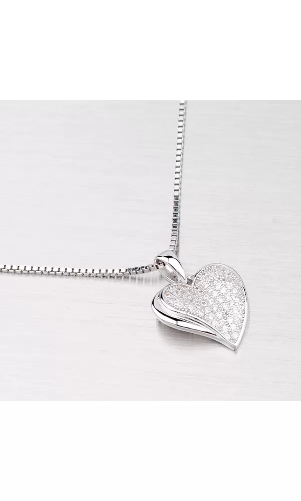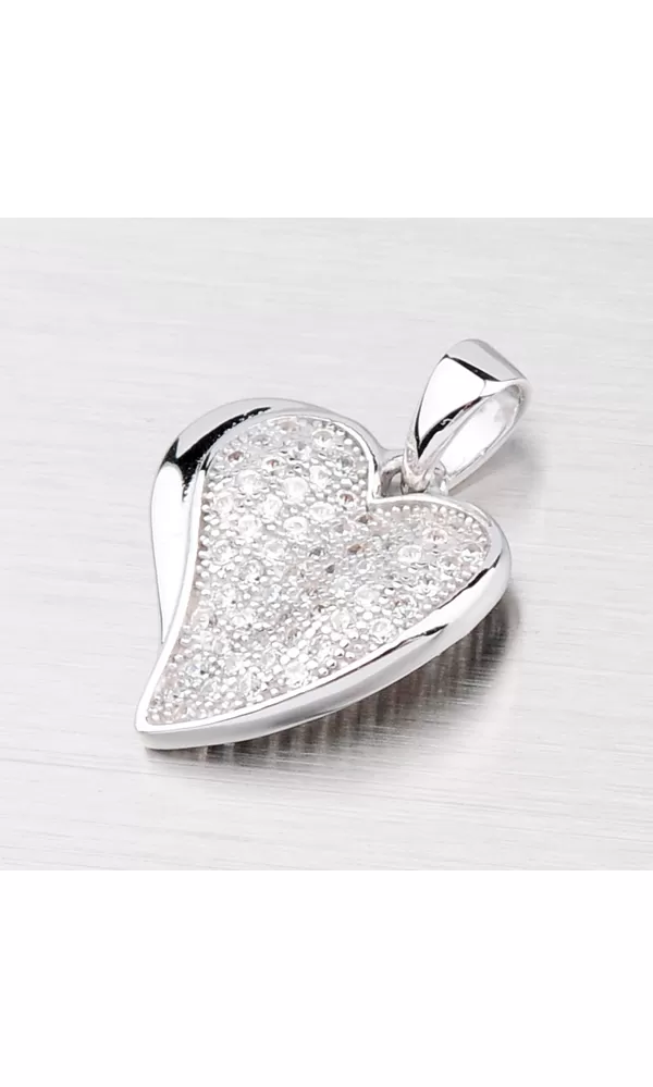 Krásny elegantný prívesok v tvare srdiečka je vyrobený zo striebra rýdzosti 925/1000. Prívesok je vyrobený v lesklej povrchovej úprave a je ozdobený bielymi drobnými zirkónmi, ktoré sú do šperky zasadené technikou microsetting. K tomuto prívesku je vhodné použiť retiazku s priemerom max. 2,00 mm.