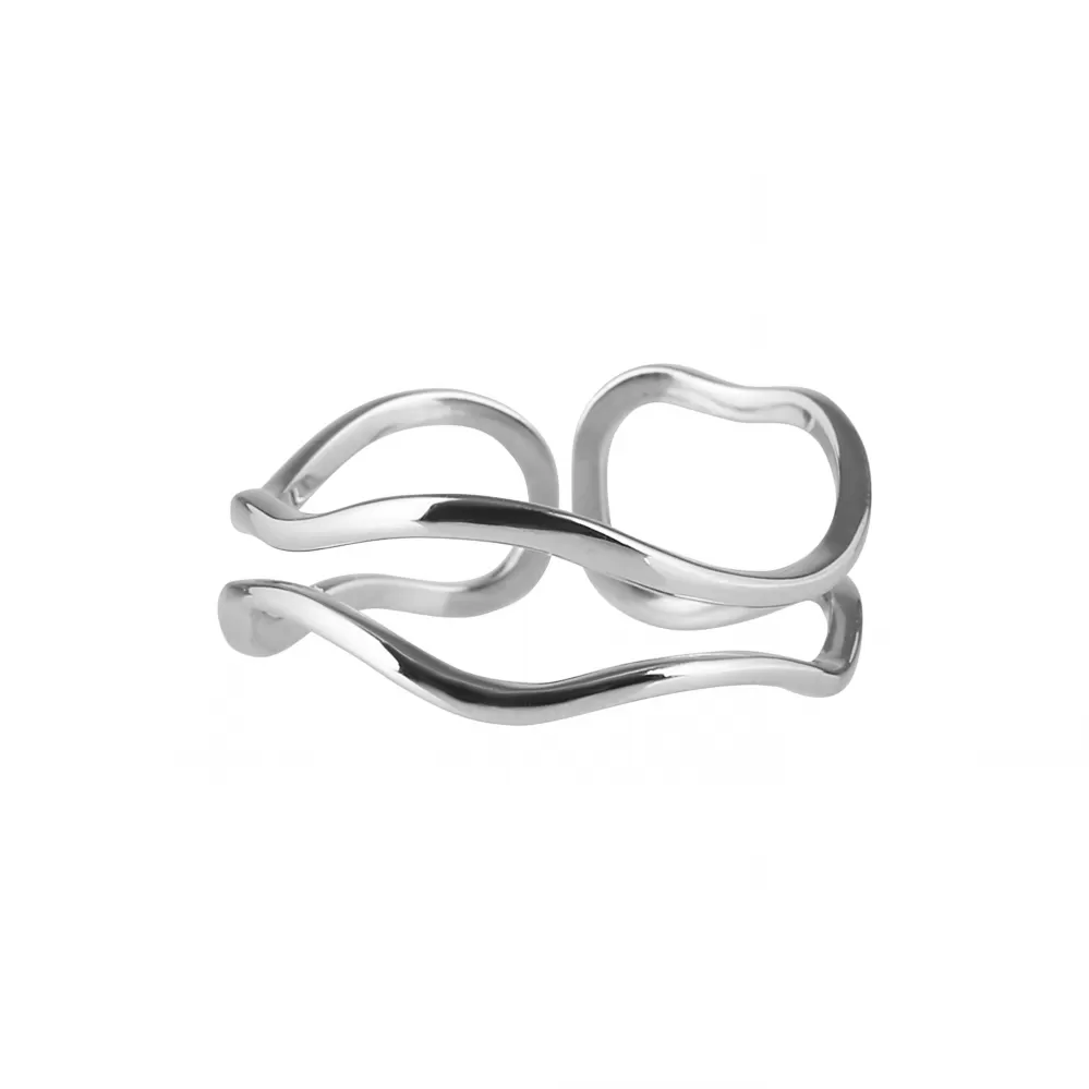 Tento minimalistický prsteň na prvý pohľad zaujme svojimi dynamicky zvlnenými líniami, ktoré sa kľukatí v nepravidelných krivkách pozdĺž jeho obvodu. Prstienok ponúka možnosť nastavenie veľkosti podľa potreby.