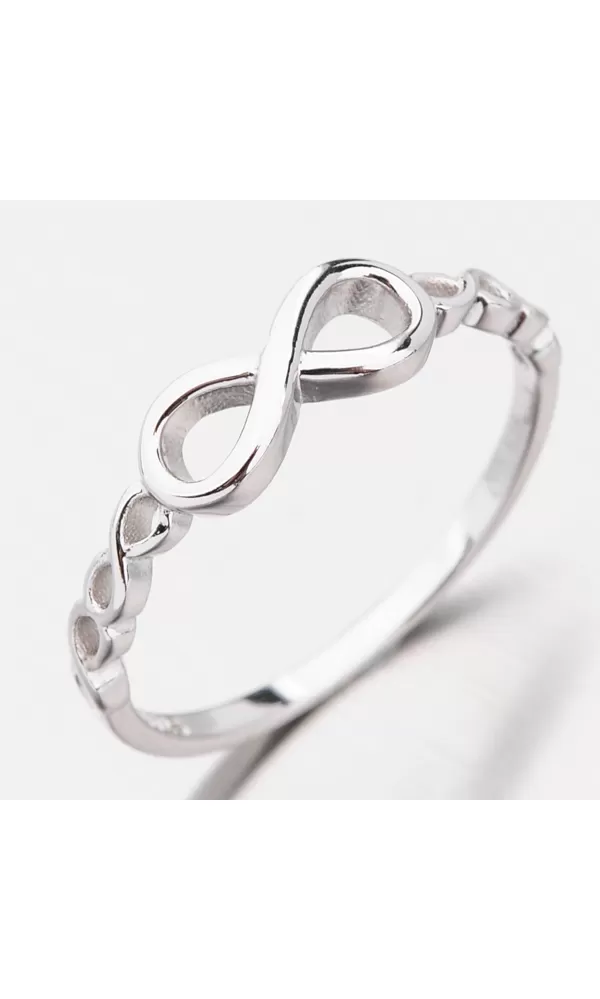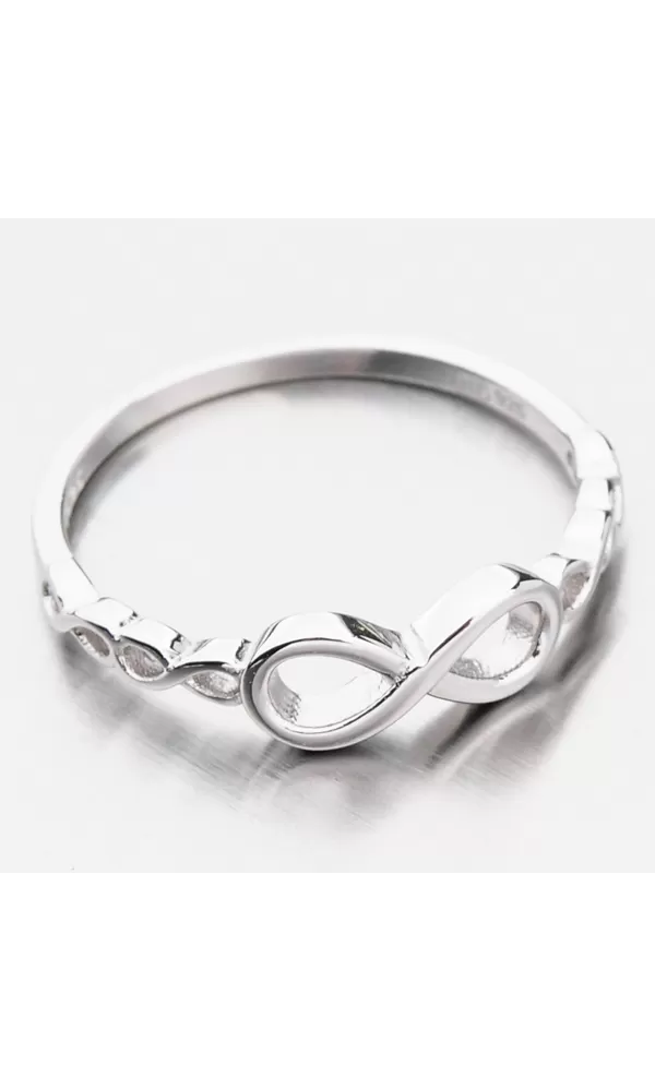 Módny prsteň je zdobený motívom nekonečna v dvoch veľkostiach. Prsteň je leštený do vysokého lesku. Rhodiovaný prsteň je vyrobený zo striebra… Celý popis