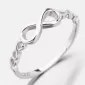 Módny prsteň je zdobený motívom nekonečna v dvoch veľkostiach. Prsteň je leštený do vysokého lesku.
