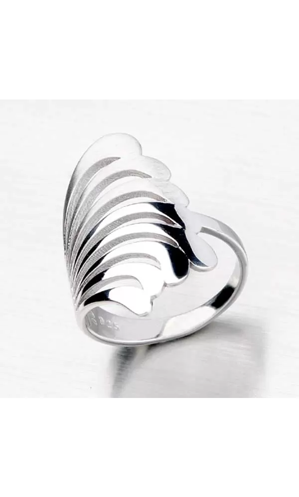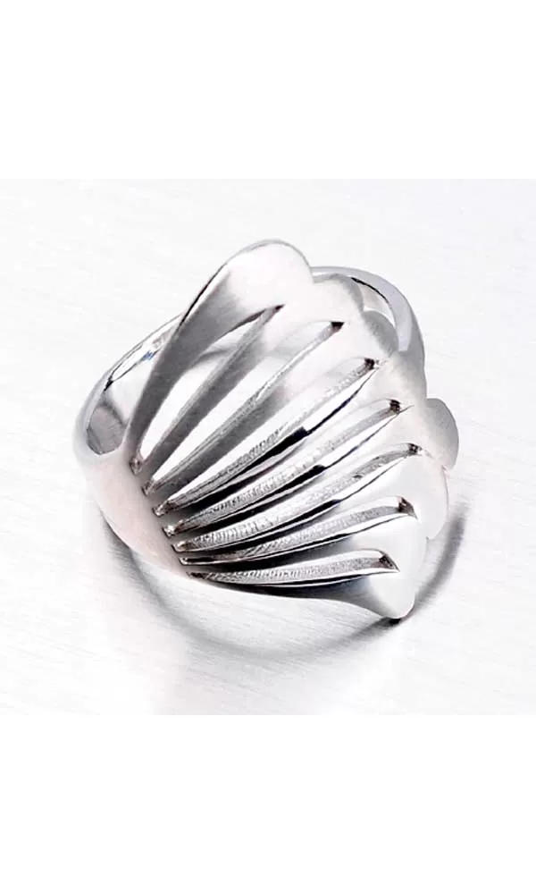 Potrebujete dominantný prsteň, ktorý rozžiari ruku? Stavte na tento strieborný prsteň, ktorý pripomína vejár a je zdobený kombináciou lesklej a matnej povrchovej úpravy.