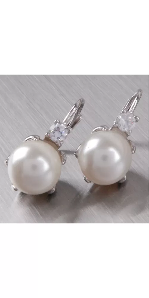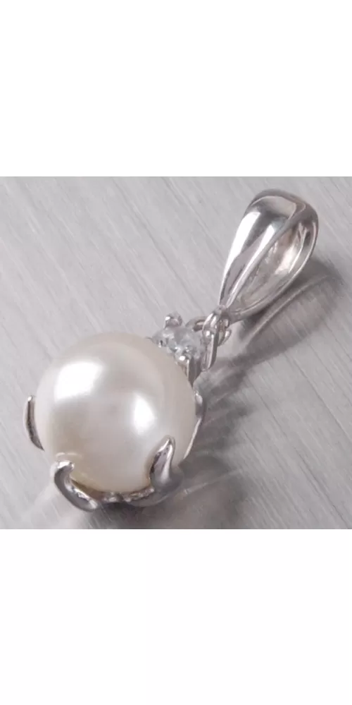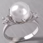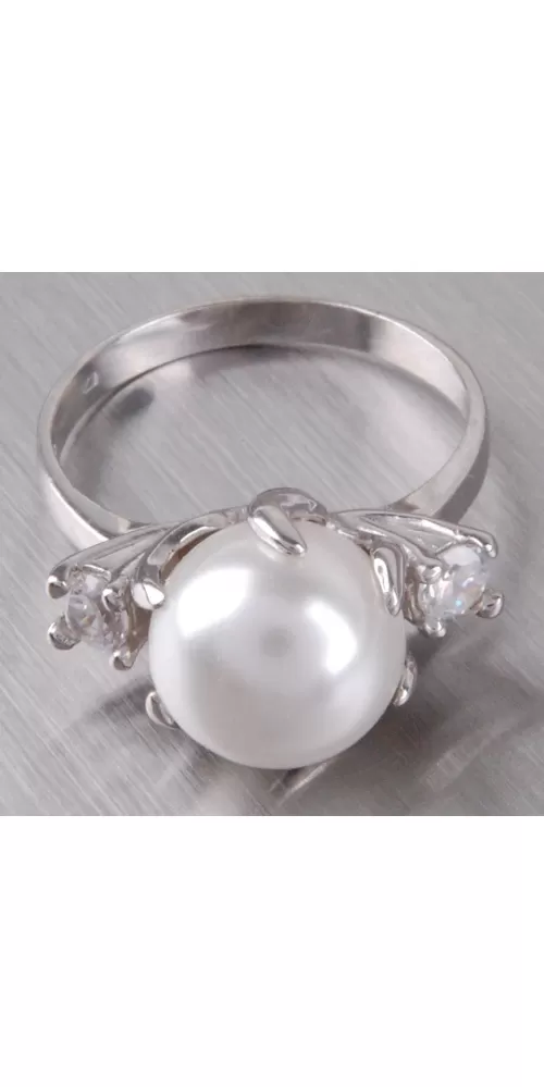 Dámsky prsteň s umelou perlou bielej farby a dvoma menšími bielymi zirkónmi. Prsteň je vyrobený zo striebra rýdzosti 925/000 v lesklom prevedení.