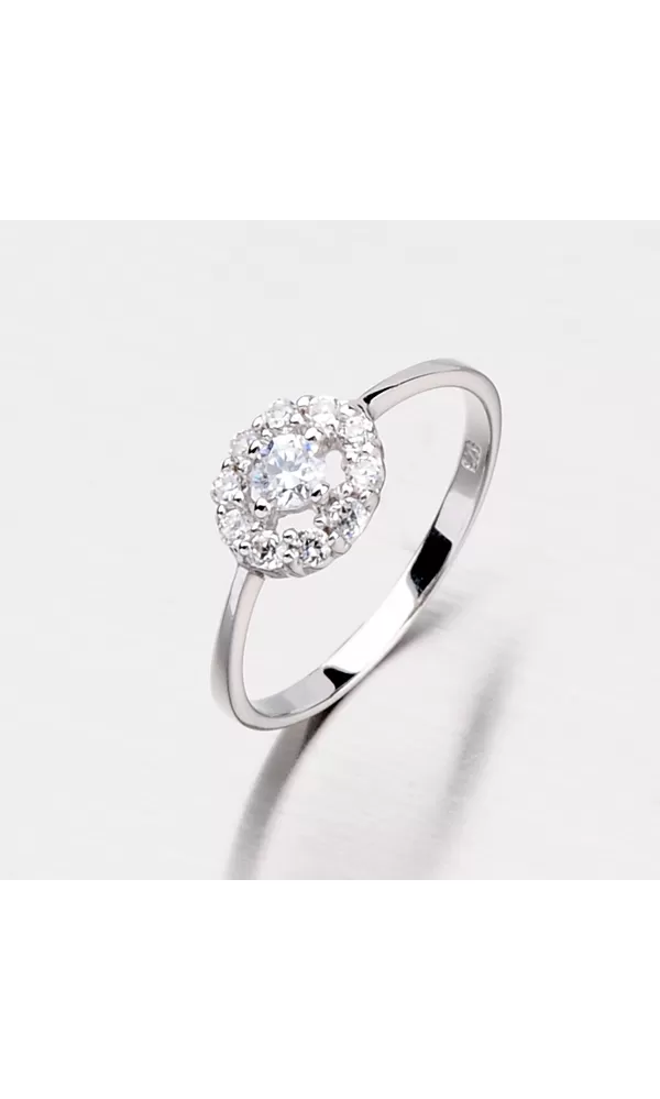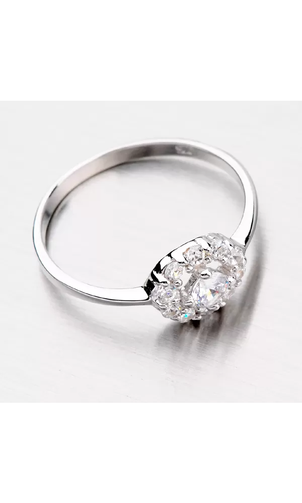 Darujte prsteň ako dôkaz lásky. Taký dar neodmietne žiadna žena. Tento jemný prsteň zdobí korunka pripomínajúca kvetinu. Korunka je tvorená prostredným veľkým zirkónom a menšími zirkónmi okolo. Prsteň pôsobí romanticky a na ruke nádherne žiari.