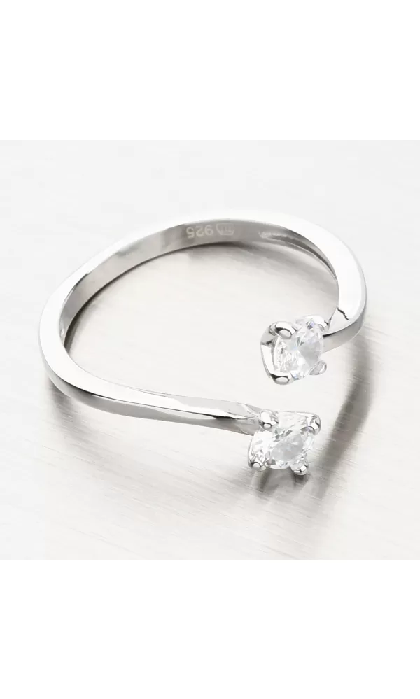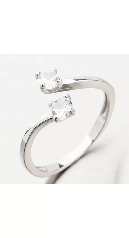 Nastaviteľný strieborný prsteň so zirkónmi GST-11524