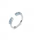 Nežný dámsky prsteň je vyrobený zo striebra rýdzosti 925/1000, ktoré je opatrené ródiom. Ródium je ušľachtilý drahý kov zo skupiny platinových kovov. Rhodiovaním strieborných prsteňov galvanickým nanášaním tohto drahého kovu sa stáva povrch šperku tvrdší, stálejší a odolnejší voči vonkajším vplyvom ako je mechanický oter, poškriabanie, nabiehanie striebra, ľudský pot, kozmetické prípravky a ďalšie. Ródium je antialergické. Strieborný prsteň je vysadený kubickými zirkónmi v modrej farbe