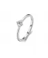 Žiarivý, dámsky prsteň je vyrobený zo striebra rýdzosti 925/1000, ktoré je zušľachtené rhodiovaním. Ródium je ušľachtilý drahý kov zo skupiny platinových kovov. Rhodiovaním strieborných prsteňov galvanickým nanášaním tohto drahého kovu sa stáva povrch šperku tvrdší, stálejší a odolnejší voči vonkajším vplyvom ako je mechanický oter, poškriabanie, nabiehanie striebra, ľudský pot, kozmetické prípravky a ďalšie. Ródium je antialergické. Strieborný prsteň je zdobený jedným veľmi precízne brúseným kubickým zirkónom.