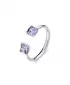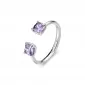 Dámsky prsteň je vyrobený zo striebra rýdzosti 925/1000 v lesklej povrchovej úprave. Prsteň je zdobený kubickými zirkónmi vo fialovej farbe, ktoré sú vsadené po stranách, precízne brúsené do hranatého tvaru. Prsteň je zušľachtený ródiom. Ródium je ušľachtilý drahý kov zo skupiny platinových kovov. Rhodiovaním strieborných prsteňov galvanickým nanášaním tohto drahého kovu sa stáva povrch šperku tvrdší, stálejší a odolnejší voči vonkajším vplyvom ako je mechanický oter, poškriabanie, nabiehanie striebra, ľudský pot, kozmetické prípravky a ďalšie. Ródium je antialergické.
