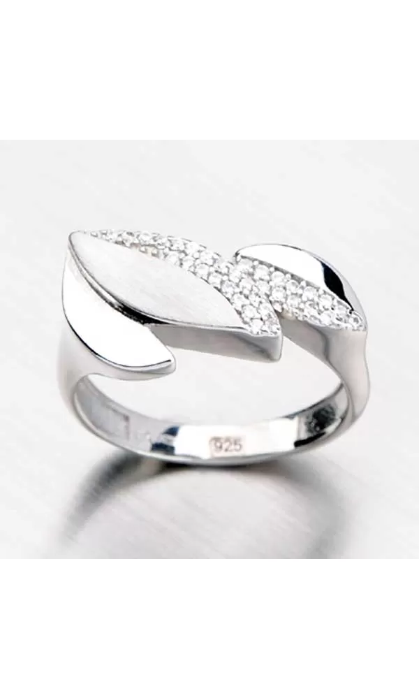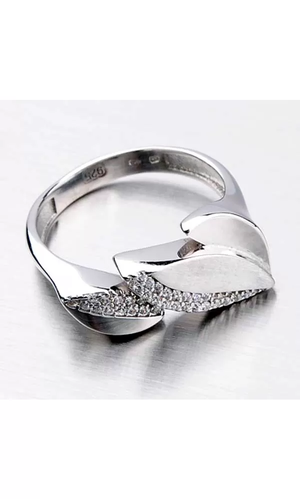 Odviažte sa s týmto strieborným prsteňom. Prsteň je tvorený z lístočkov, ktoré sú v kombinácii lesklej a matnej povrchovej úpravy. Tiež sú zdobené žiarivými zirkónmi v briliantovom bruse. Tento neobyčajný prsteň si obľúbite a bude patriť medzi šperky číslo jedna vo vašej šperkovnici.