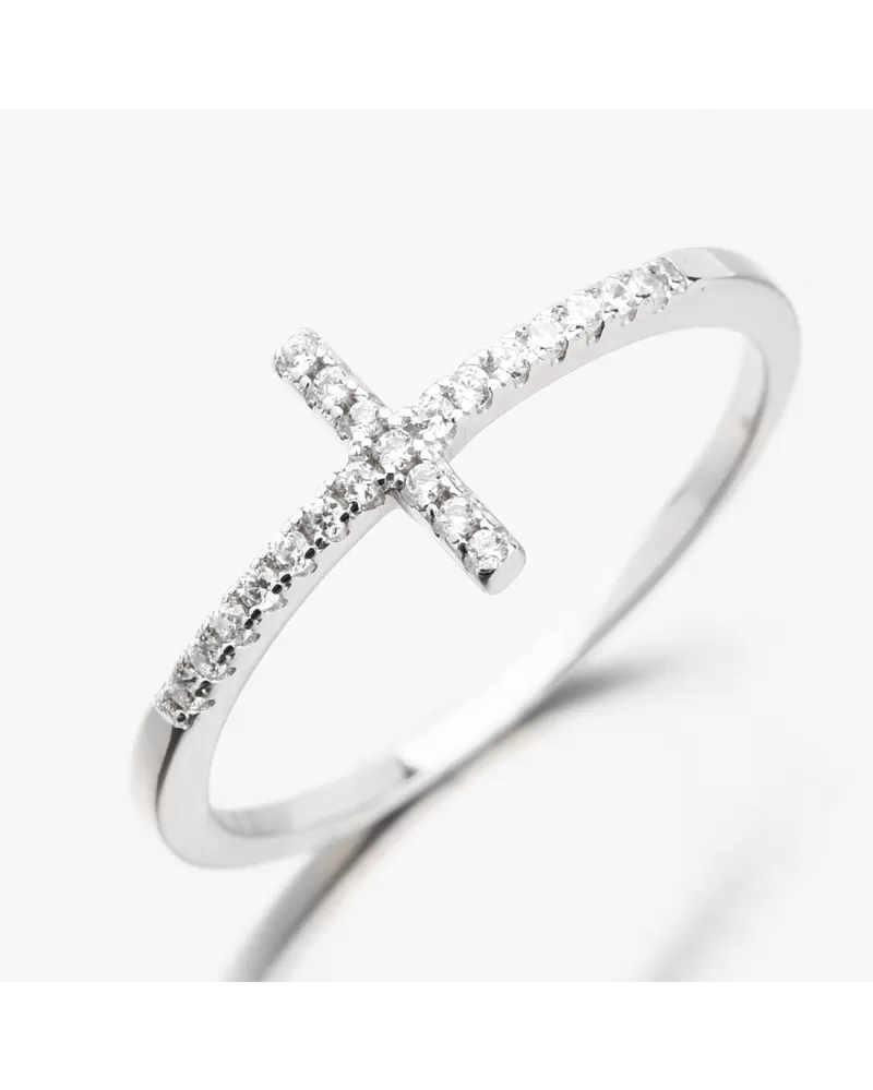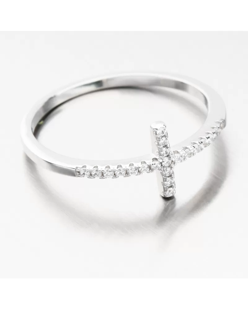 Strieborný prsteň s krížikom so zirkónmi GST-11359