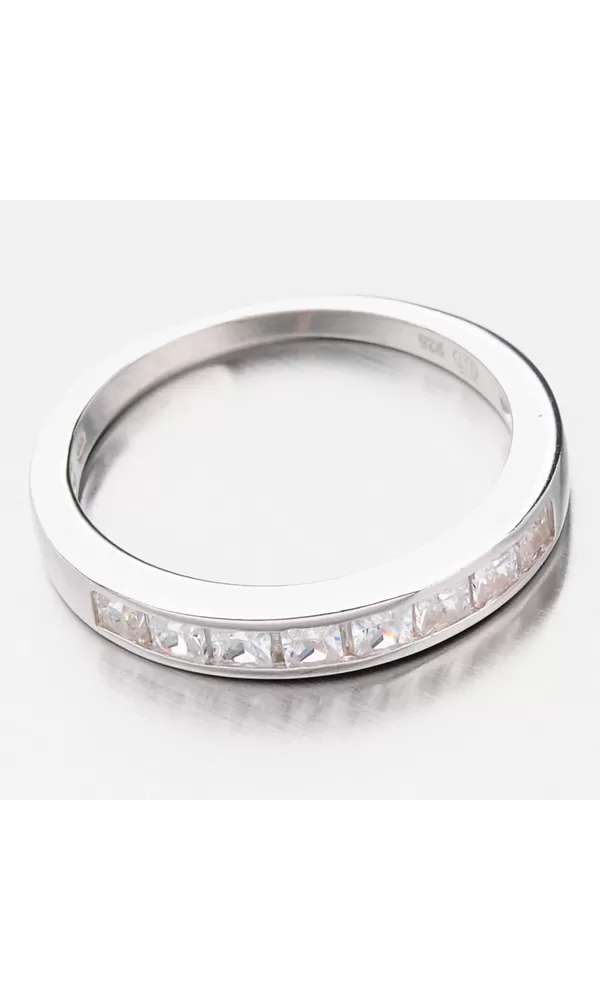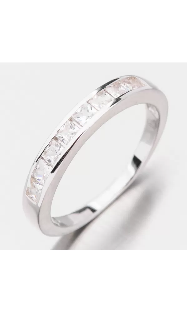 Veľmi poholdný trojbrový prsteň zaujme svojou jednoduchosťou a leskom, ktorý vytvára zirkóny v bruse princess. Zirkóny sú vsadené v rade jeden vedľa druhého. Tento príjemný prsteň sa skvele hodí na kadodenné nosenie. Ľahko ho zladíte s inými šperkami so zirkónmi.