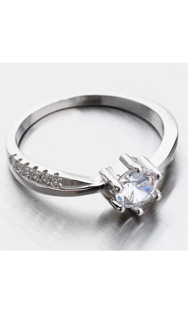 Hľadáte dokonalý zásnubný prsteň pre svoju milovanú? Tento strieborný prsteň bude pravý dôkaz vašej lásky. Prsteň dominuje veľkým zirkónom v briliantovom bruse, ktorý je uchytený šiestimi krapnami. Oslnivá krása a ligot tohto zirkónu vás očarí. Na obrúčke sú starostlivo vsadené menšie zirkóny nemenej také žiarivé. Tento strieborný prsteň sa môže darovať ako zásnubný ale tiež nemusí. Pre akú príležitosť ho zvolíte darovať ich len na vás.