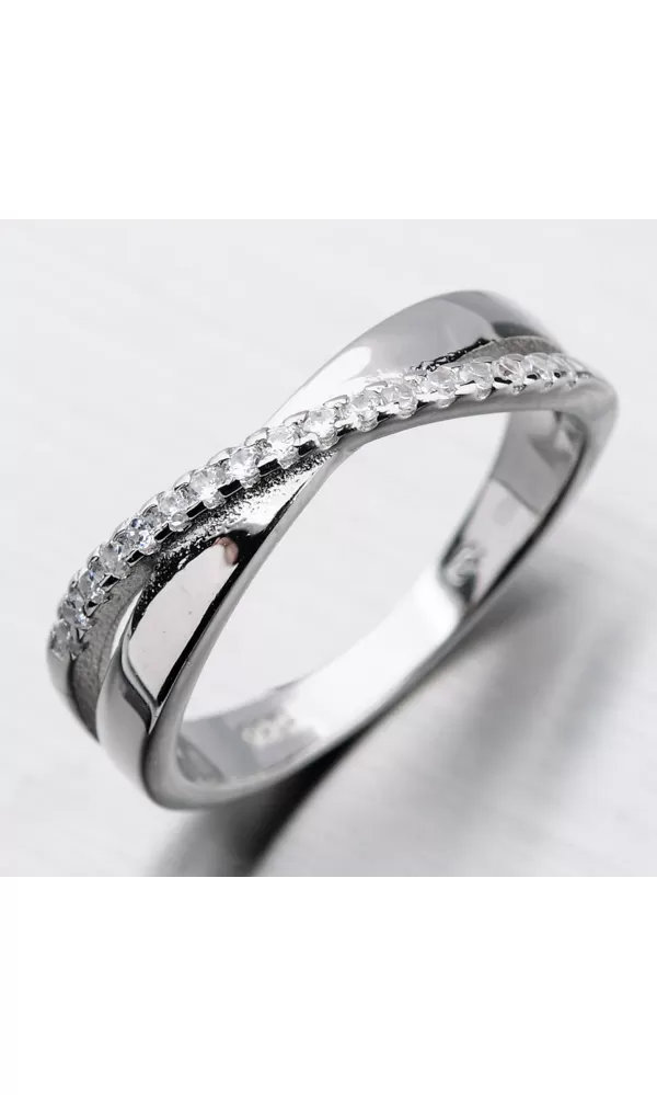 Elegantný prsteň je tvorený z dvoch vlniek, ktoré sa uprostred pretínajú. Jedna z vlniek je zdobená žiarivými zirkónmi v briliantovom bruse. Tento brús dodáva zirkónom dokonalú brilanciu a trblietanie, ktoré nikto neprehliadne. Hoci má prsteň zirkóny je veľmi pohodlný a nezadrháva. Urobte si radosť alebo jej urobte niekomu iným.