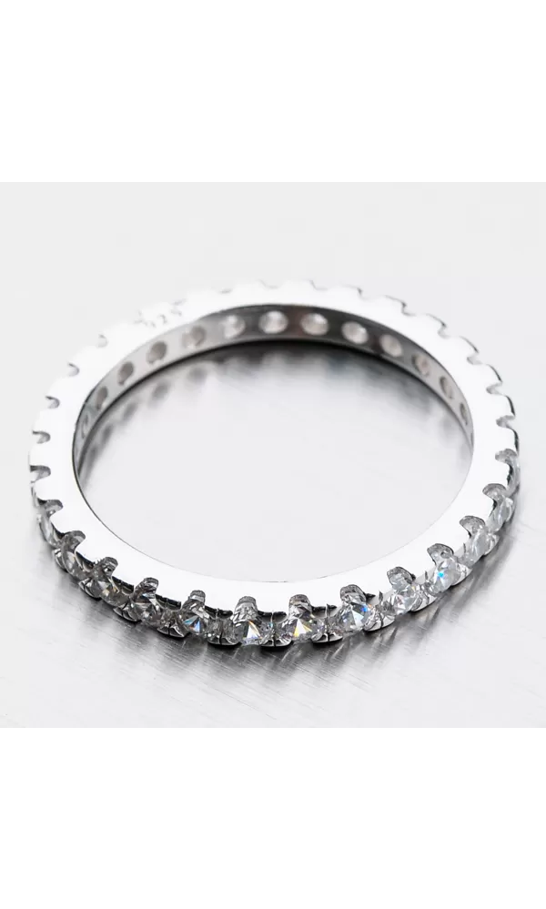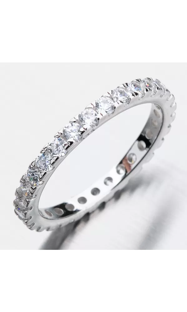 Neuveriteľne žiarivý prsteň sa môže pýšiť zirkónmi, ktoré sú precízne vsadené do celej obrúčky prsteňa. Prstene sú vsadené tesne jeden vedľa druhého a prsteň tak pôsobí veľmi luxusne. Tento model prsteň, hoci sa môže zdať, že už je sám o sebe ozdobný, tak ho jednoducho zladíte s inými prsteňmi. Prsteň je vhodný na každodenné nosenie je veľmi pohodlný a pristane každej žene.