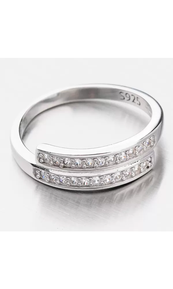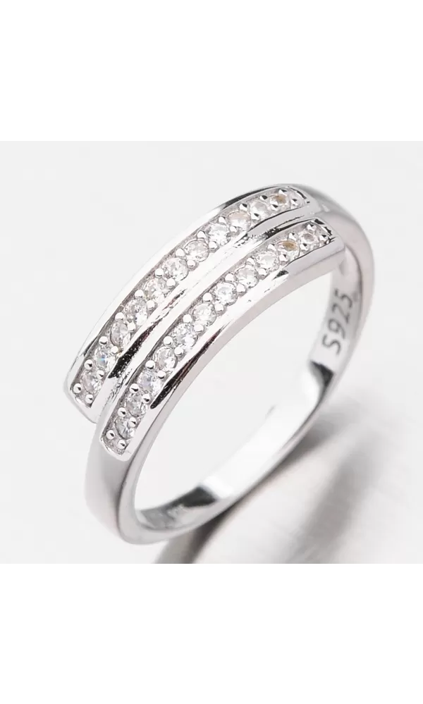 Strieborný prsteň je zdobený zirkónmi v briliantovom bruse. Tento brús zaisťuje zirkónom brilanciu pravých diamantov. Prsteň je navrhnutý tak, aby dokonale padol na prst a nezadrhával za oblečenie. Je veľmi pohodlný.