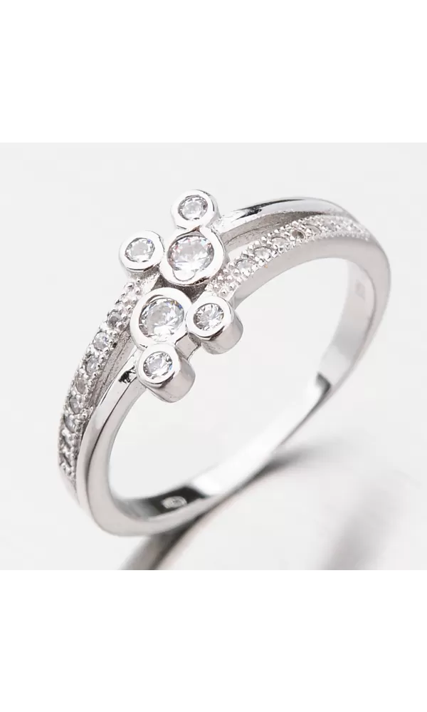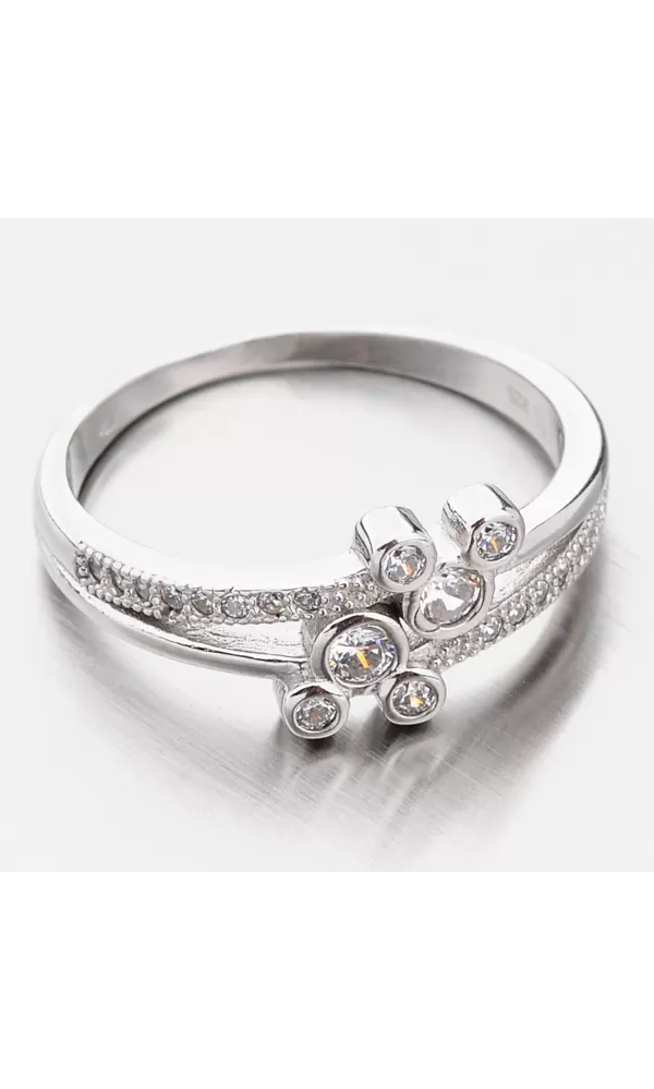 Tento prsteň si zamilujete. Jeho dizajn sa vám nikdy neopozerá. Je zdobený striebornými guličkami, ktoré pripomínajú bublinky do ktorých sú vsadené žiarivé zirkóny v briliantovom bruse. Vďaka tomuto brúsu majú zirkóny brilanciu pravých diamantov. Žiarivé zirkóny sú vsadené aj na obrúčke.