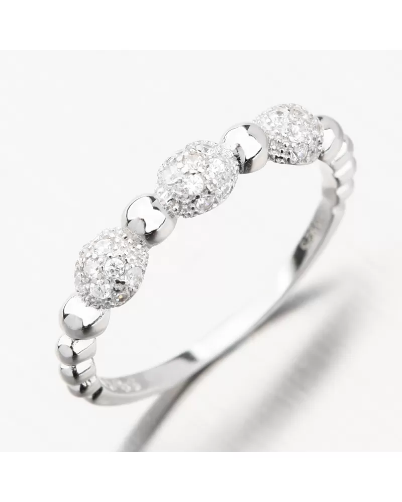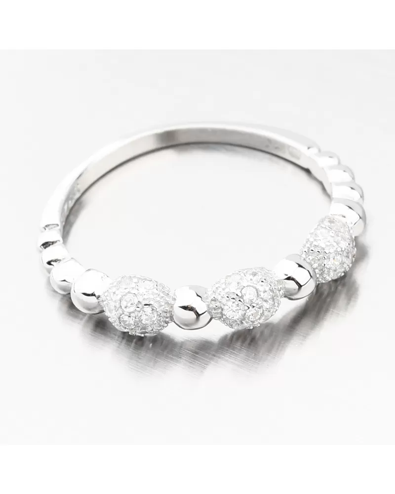 Hľadáte niečo iné ako všade na internete vidíte? Tento prsteň je nádherne spracovaný do toho najmenšieho detailu. Je zdobený striebornými guličkami vo vysokom lesku a potom tu som tri oválky, ktoré sú osadené malými žiarivými zirkónmi. Zirkóny nevyčnievajú a vy sa tak nemusíte báť, že by ste s prsteňom kdekoľvek zatrhli alebo by vám prekážali. Zirkóny sú okrúhleho briliantového brusu, ktorý zaisťuje maximálnu brilanciu vybrúsených facet, dokonale odráža svetlo a neuveriteľne žiari z každého uhla pohľadu. Prsteň má od srdiečka rozdvojenú obrúčku a tá sa potom spája do jednej hlavnej. Prsteň má príjemnú váhu, ktorá zaistí pohodlné nosenie po celý deň.