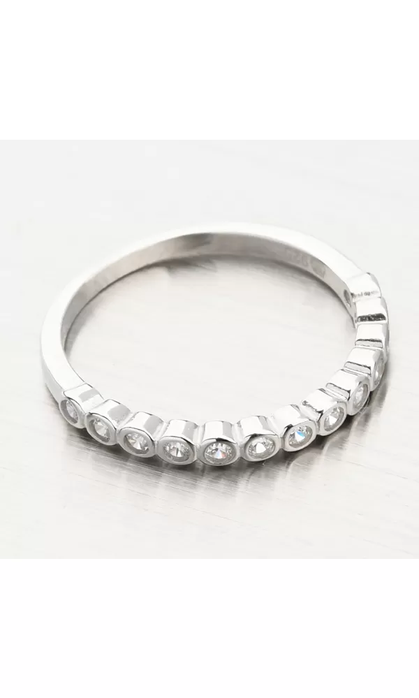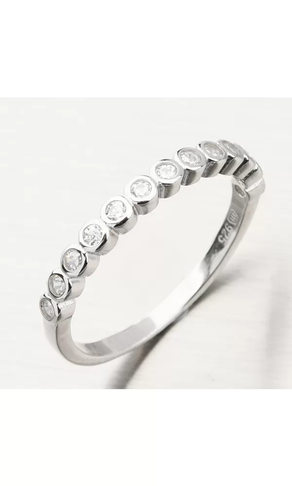 Jemný a romantický prsteň pre ženy či dievčatá. Týmto prsteň zaručene urobíte radosť. Prsteň je jednoduchý, elegantný a žiarivý. Predná časť prsteňa je osadená trblietavými zirkónmi. Všetky zirkóny sú okrúhleho briliantového brusu, ktorý zaisťuje maximálnu brilanciu vybrúsených facet, dokonale odráža svetlo a neuveriteľne žiari z každého uhla pohľadu. Prsteň je veľmi ľahký, a preto je jeho nosenie po celý deň veľmi pohodlné.