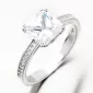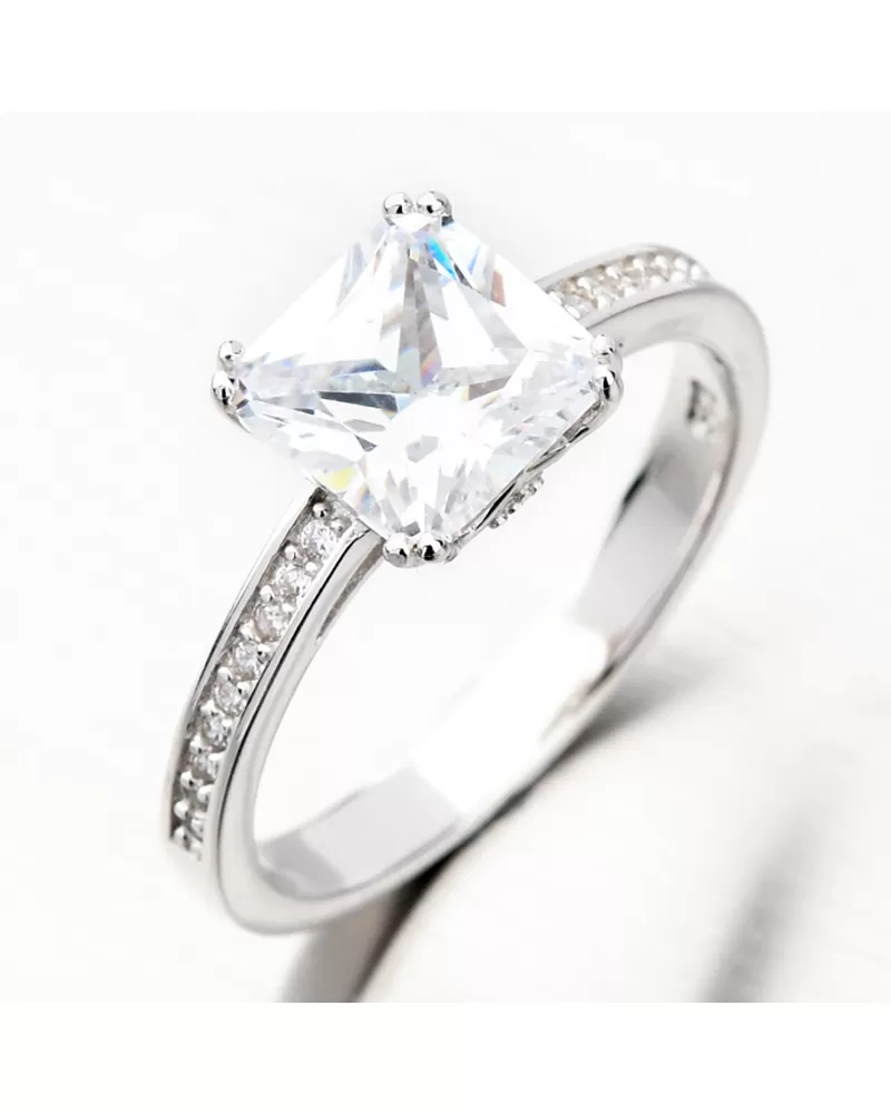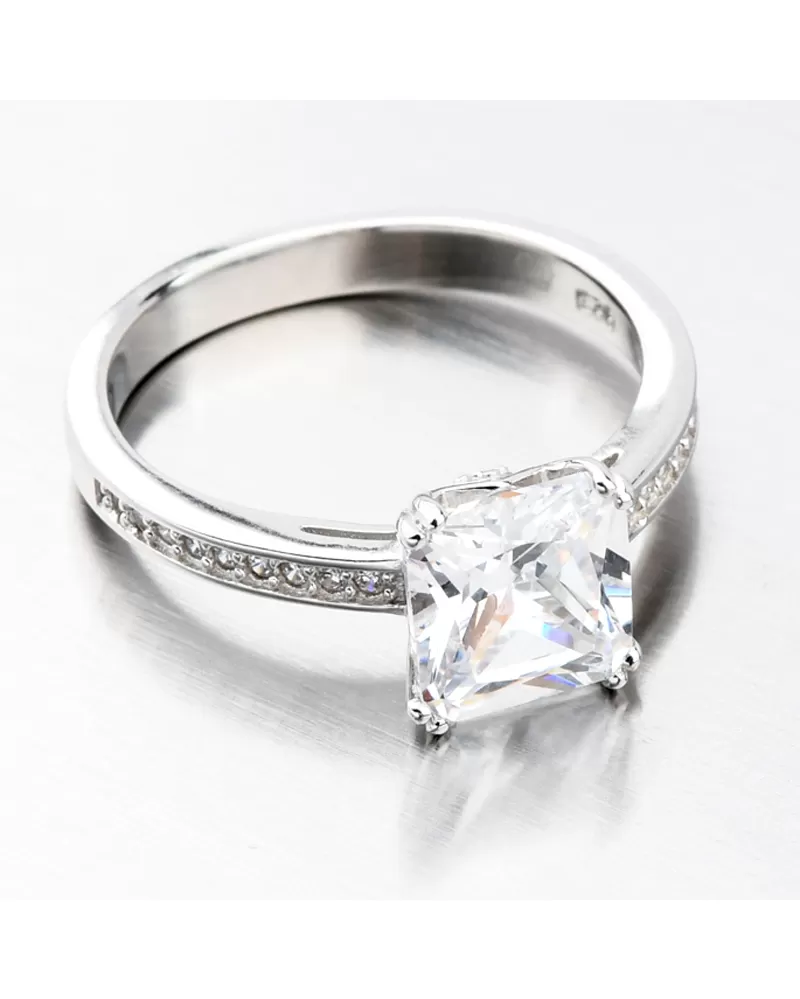 Nádherný prsteň, ktorý bude vhodný pre ženy, ktoré majú rady výrazné šperky a doplnky. Dominantou prsteňa je štvorcový zirkón v strede prsteňa, potom je okolo neho obrúčka osadená drobnými zirkónmi na prednej časti. Drobné zirkóny sú okrúhleho briliantového brusu, ktorý zaisťuje maximálnu brilanciu vybrúsených facet, dokonale odráža svetlo a neuveriteľne žiari z každého uhla pohľadu. Aj napriek svojej veľkosti je prsteň ľahký, a preto je jeho nosenie po celý deň veľmi pohodlné.