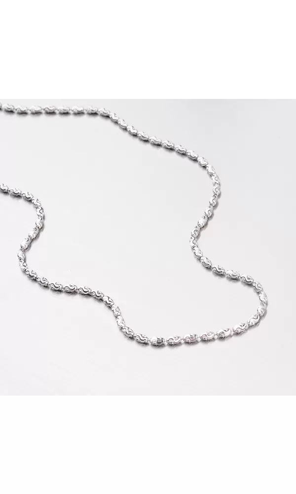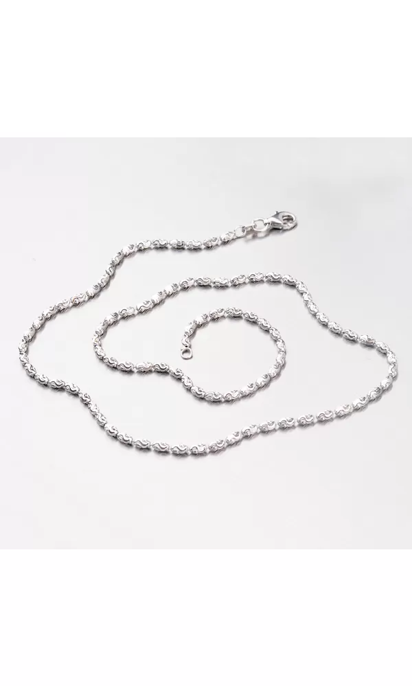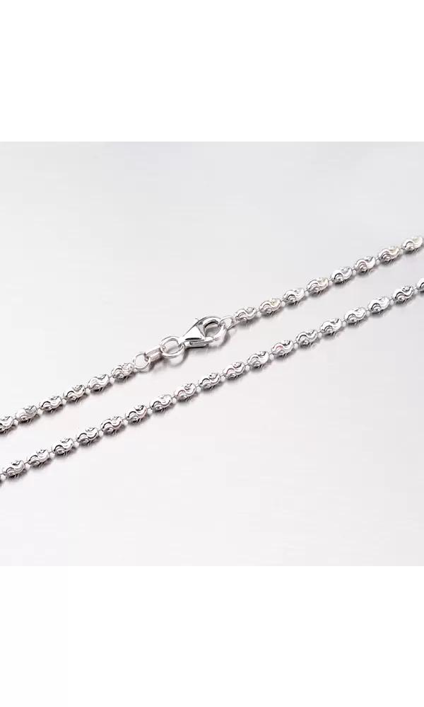 Krásna retiazka zo striebra rýdzosti 925/1000 je zložená z oválnych korálok, ktoré sú zdobené gravírovanými fazetami. Fazety sú vyrobené pomocou diamantového nástroja a dodávajú šperkom maximálny lesk a brilanciu zo všetkých uhlov. Pre vysokú odolnosť reťaze je jej povrch rhodiovaný. Ródium je ušľachtilý drahý kov zo skupiny platinových kovov. Rhodiovaním strieborných šperkov galvanickým nanášaním tohto drahého kovu sa povrch šperku stáva tvrdším, trvácnejším a odolnejším voči vonkajším vplyvom ako sú mechanické otery, poškriabanie, zatekanie striebra, ľudský pot, kozmetické prípravky a iné. Rhodium je antialergické.