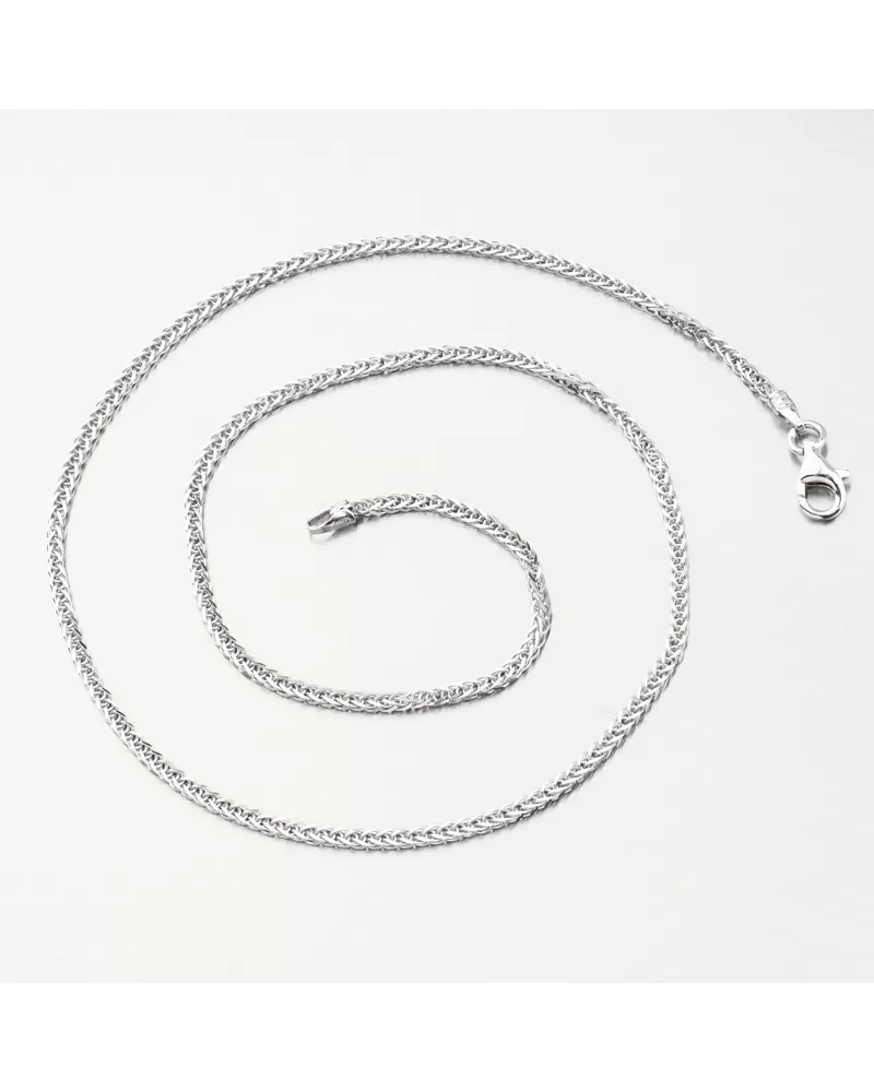 Táto retiazka typu Fox je vyrobená zo strieborna rýdzosti 925/1000 v lesklej povrchovej úprave so zapínaním na karabínu a je upravená rhodiovaním. Ródium je ušľachtilý drahý kov zo skupiny platinových kovov. Rhodiovaním strieborných šperkov galvanickým nanášaním tohto drahého kovu sa stáva povrch šperku tvrdší, stálejší a odolnejší voči vonkajším vplyvom ako je mechanický oter, poškriabanie, nabiehanie striebra, ľudský pot, kozmetické prípravky a ďalšie. Ródium je antialergické.