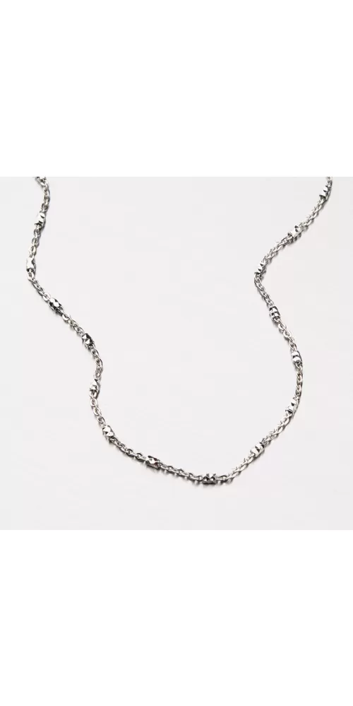Jemná retiazka s valčekmi je vyrobená zo strieborna rýdzosti 925/1000 v lesklej povrchovej úprave so zapínaním na perový krúžok. Valčeky retiazky sú gravírované za pomoci diamantového nástroja, ktorý gravírovaniu dodáva maximálny lesk. Povrch retiazky je zušľachtený rhodiovaním. Ródium je ušľachtilý drahý kov zo skupiny platinových kovov. Rhodiovaním strieborných šperkov galvanickým nanášaním tohto drahého kovu sa stáva povrch šperku tvrdší, stálejší a odolnejší voči vonkajším vplyvom ako je mechanický oter, poškriabanie, nabiehanie striebra, ľudský pot, kozmetické prípravky a ďalšie. Ródium je antialergické.