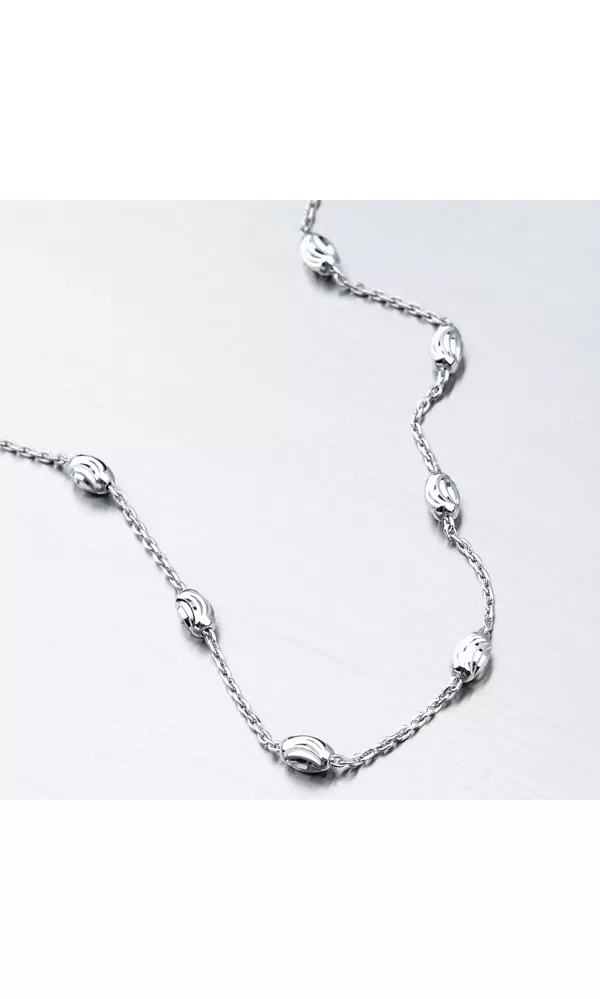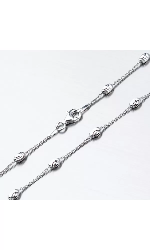 Retiazka typu Anker je vyrobená zo striebra o rýdzosti 925/1000 a zaujme vaše okolie vďaka oválnym strieborným korálikom s lesklým povrchom, ktoré sú rovnako ako samotná časť retiazky zdobené facetami, ktoré dodávajú šperku maximálny lesk. Pre vysokú odolnosť retiazky je jeho povrch zušľachtený rhodiovaním. Ródium je ušľachtilý drahý kov zo skupiny platinových kovov. Rhodiovaním strieborných šperkov galvanickým nanášaním tohto drahého kovu sa stáva povrch šperku tvrdší, stálejší a odolnejší voči vonkajším vplyvom ako je mechanický oter, poškriabanie, nabiehanie striebra, ľudský pot, kozmetické prípravky a ďalšie. Ródium je antialergické.