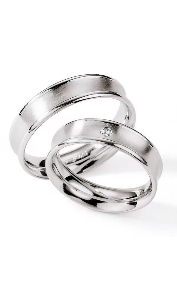 Snubné prstene zo striebra s diamantom v modernom konkávnom profile na strednej časti prsteňa, ktorá je zamatovo matná as lesklými zaoblenými krajmi, ktoré sú oddelené jemnými ryhami. V dámskom prsteni je vsadený jeden diamant vlastnosťami, ktoré sú oproti iným kameňom bezkonkurenčné. Je to najtvrdší nerast, ktorý nikdy nestratí svoju hodnotu. život! Vsadzovanie diamantov vykonávajú naši najskúsenejší majstri zlatníci ručne pod mikroskopom s presnosťou na 0,01mm a preto nehrozí vypadnutie kamienkov ako to býva u strojne vyrábaných snubných prsteňov. Snubné prstene majú vnútorný fit profil - zaoblenie vnútornej strany prsteňov pre príjemnejšie nosenie, nasadzovanie a odnímanie prsteňov.