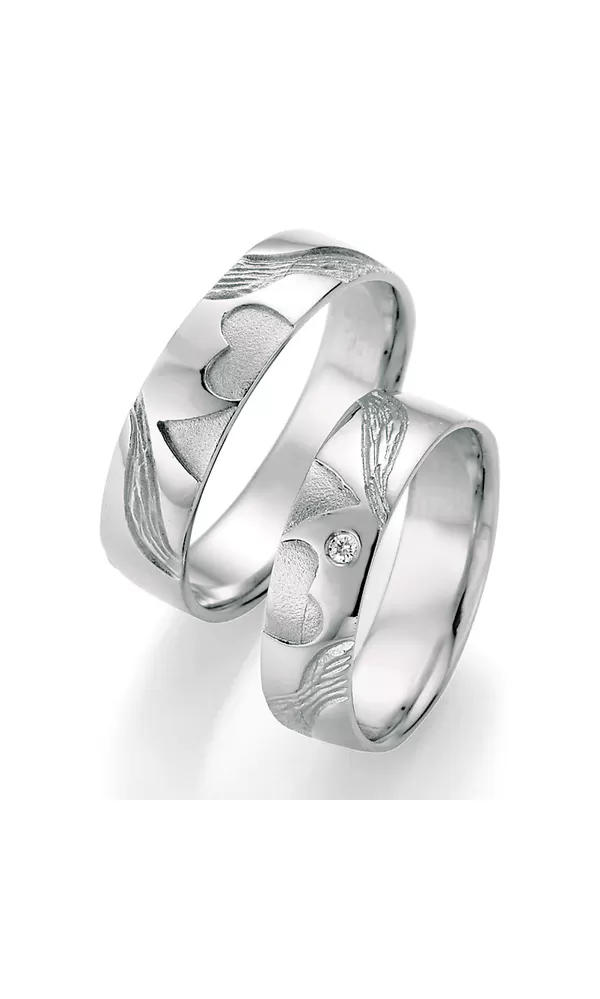 Netradičné snubné prstene moderného dizajnu sú vyrobené zo striebra rýdzosti 925/1000 polguľatého profilu s kombinovanou povrchovou úpravou. Prstene sú matné s zľaklými symbolmi. V dámskom prsteni je vsadený jeden okrúhly diamant briliantového brusu.  Diamanty vynikajú svojou krásou a vlastnosťami, ktoré sú oproti iným kameňom bezkonkurenčné. Je to najtvrdší nerast, ktorý nikdy nestratí svoju hodnotu. Diamant je kráľ všetkých drahokamov a teda aj jedným z najcennejších a preto sa oplatí do šperkov s diamantmi investovať a predovšetkým pri snubných prsteňoch, ktoré sú na celý život!  Vsadzovanie diamantov vykonávajú naši najskúsenejší majstri zlatníci ručne pod mikroskopom s presnosťou na 0,01 mm a preto nehrozí vypadnutie kamienkov ako to býva u strojne vyrábaných snubných prsteňov. Snubné prstene majú vnútorný fit profil - zaoblenie vnútornej strany prsteňov pre príjemnejšie nosenie, nasadzovanie a odnímanie prsteňov.