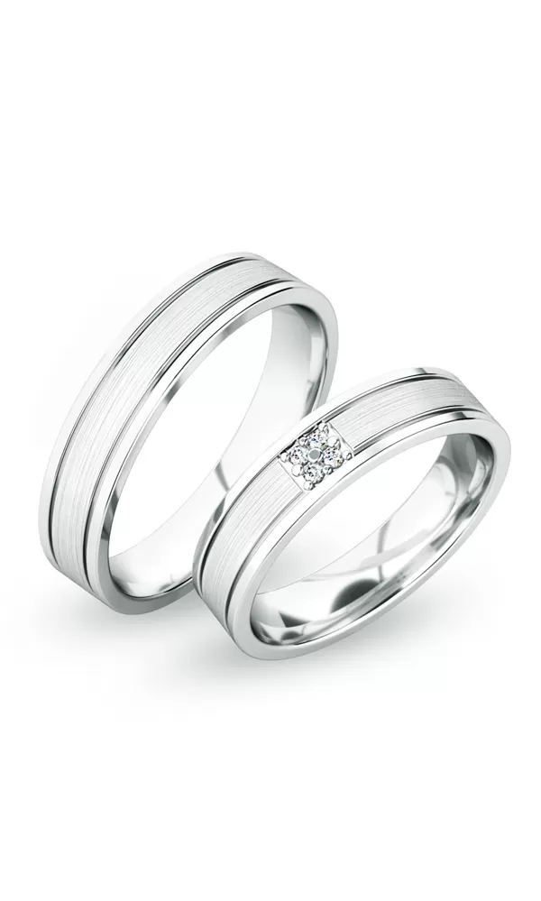Snubné prstene rovného profilu sú vyrobené zo striebra 925/1000 v kombinovanej povrchovej úprave lesk x mat. Snubné prstene majú vnútorné Fit Profil - polguľatú vnútornú stranu pre príjemnejšie nosenie, nasadzovanie a odnímanie. V dámskom prsteni sú vsadené 4ks okrúhlych zirkónov s briliantovým brusom Signity star, ktorý dodáva zirkónom oslnivú brilanciu. Do snubných prsteňov si môžete nechať staviť aj diamanty. Kamene sú vsadené do zrniek. Diamanty vynikajú svojou krásou a vlastnosťami, ktoré sú oproti iným kameňom bezkonkurenčné. Je to najtvrdší nerast, ktorý nikdy nestratí svoju hodnotu. Diamant je kráľ všetkých drahokamov a teda aj jedným z najcennejších a preto sa oplatí do šperkov s diamantmi investovať a predovšetkým pri snubných prsteňoch, ktoré sú na celý život! Vsadzovanie zirkónov aj diamantov vykonávajú naši najskúsenejší majstri zlatníci ručne pod mikroskopom s presnosťou na 0,01 mm a preto nehrozí vypadnutie kamienkov ako to býva u strojne vyrábaných snubných prsteňov.