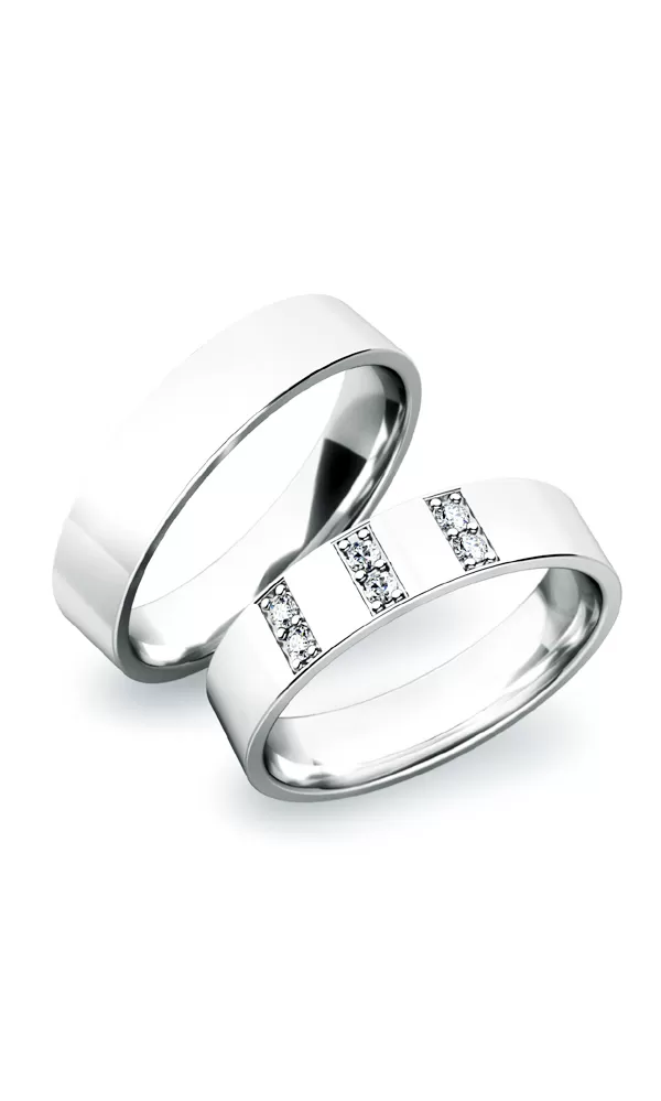 Krásne snubné prstene v rovnom profile sú vyrobené zo striebra s rýdzosťou 925/1000 v lesklej povrchovej úprave. Snubné prstene majú vnútorné Fit Profil - polguľatú vnútornú stranu pre príjemnejšie nosenie, nasadzovanie a odnímanie. V dámskom prsteni je vsadených šesť okrúhlych zirkónov popr. diamantov briliantového brusu. Diamanty vynikajú svojou krásou a vlastnosťami, ktoré sú oproti iným kameňom bezkonkurenčné. Je to najtvrdší nerast, ktorý nikdy nestratí svoju hodnotu. Diamant je kráľ všetkých drahokamov a teda aj jedným z najcennejších a preto sa oplatí do šperkov s diamantmi investovať a predovšetkým u snubných prsteňov, ktoré sú na celý život! mm a preto nehrozí vypadnutie kamienkov ako to býva u strojovne vyrábaných snubných prsteňov.