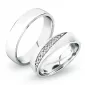 Snubné prstene mierne polguľatého profilu sú vyrobené zo striebra 925/1000 v kombinovanej povrchovej úprave, kedy dámsky prsteň je matný a pánsky prsteň lesklý. Samozrejme je možné vyrobiť oba prstene lesklé alebo matné. Variant povrchovej úpravy si môžete vybrať vo voľbe Povrchová úprava. Snubné prstene majú vnútorné Fit Profil - polguľatú vnútornú stranu pre príjemnejšie nosenie, nasadzovanie a odnímanie. V dámskom prsteni je vsadených 9ks okrúhlych zirkónov s briliantovým brusom Signity star, ktorý dodáva zirkónom oslnivú brilanciu. Do snubných prsteňov si môžete nechať staviť aj diamanty. Kamene sú do prsteňa vsadené "do zrniek". Diamanty vynikajú svojou krásou a vlastnosťami, ktoré sú oproti iným kameňom bezkonkurenčné. Je to najtvrdší nerast, ktorý nikdy nestratí svoju hodnotu. Diamant je kráľ všetkých drahokamov a teda aj jedným z najcennejších a preto sa oplatí do šperkov s diamantmi investovať a predovšetkým pri snubných prsteňoch, ktoré sú na celý život! Vsadzovanie zirkónov aj diamantov vykonávajú naši najskúsenejší majstri zlatníci ručne pod mikroskopom s presnosťou na 0,01 mm a preto nehrozí vypadnutie kamienkov ako to býva u strojne vyrábaných snubných prsteňov.