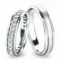 Moderné snubné prstene mierne polguľatého profilu sú vyrobené zo striebra 925/1000 v kombinovanej povrchovej úprave, kedy prostredná časť je matná a zaoblené kraje sú lesklé. Snubné prstene majú vnútorné Fit Profil - polguľatú vnútornú stranu pre príjemnejšie nosenie, nasadzovanie a odnímanie. V dámskom prsteni je vsadené po celom obvode 28ks (počet je závislý na veľkosti dámskeho prsteňa) okrúhlych zirkónov s briliantovým brusom Signity star, ktorý dodáva zirkónom oslnivú brilanciu. Do snubných prsteňov si môžete nechať staviť aj diamanty. Kamene sú do prsteňa vsadené "do zrniek". Vsadzovanie zirkónov vykonávajú naši najskúsenejší majstri zlatníci ručne pod mikroskopom s presnosťou na 0,01mm a preto nehrozí vypadnutie kamienkov ako to býva u strojne vyrábaných snubných prsteňov.