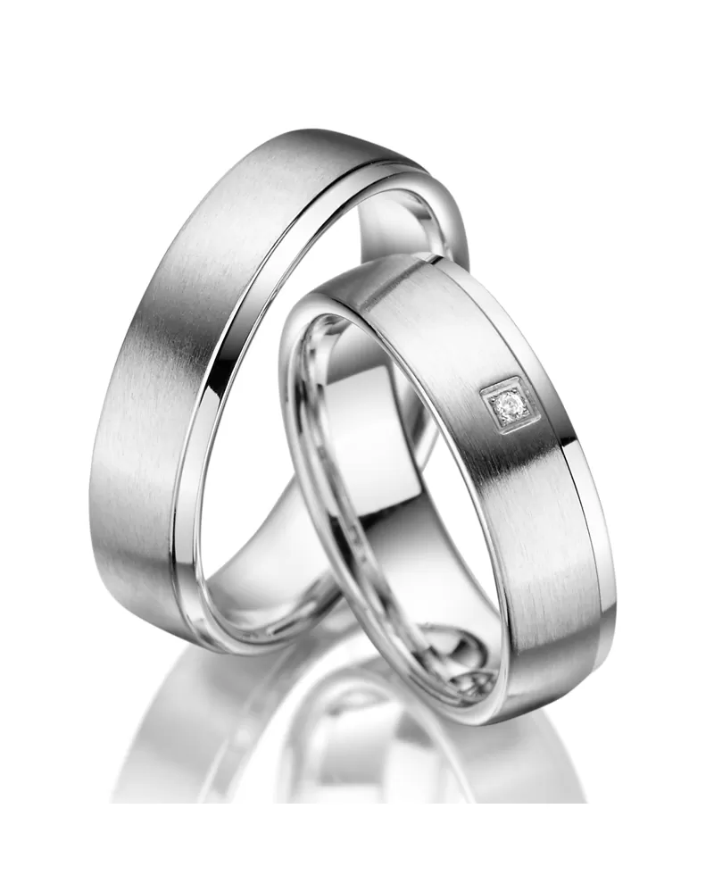 Snubné prstene sú v kombinácii zamatového matu a lesku. Pričom zamatový mat zdobí väčšiu časť prsteňov. V dámskom prsteni je vsadený do štvorčeka jeden okrúhly zirkón s briliantovým brusom Signity star, ktorý dodáva zirkónu maximálnu brilanciu. Vsadzovanie zirkónov vykonávajú naši najskúsenejší majstri zlatníci ručne pod mikroskopom s presnosťou na 0,01mm a preto nehrozí vypadnutie kamienkov ako to býva u strojne vyrábaných snubných prsteňov.
