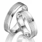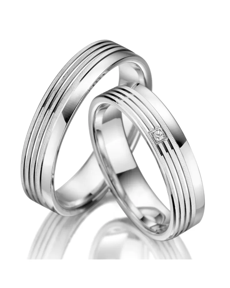 Pro odvážné páry co mají touhu po něčem výjimečném máme moderní snubní prsteny v rovném profilu. Snubní prsteny jsou vyrobeny ze stříbra ryzosti 925/1000 a jejich povrch je zušlechtěn rhodiováním. Rhodium je ušlechtilý drahý kov ze skupiny platinových kovů. Rhodiováním stříbrných šperků galvanickým nanášením tohoto drahého platinového kovu se stává povrch šperku tvrdší, stálejší a odolnější vůči vnějším vlivům jako je mechanický otěr, poškrábání, nabíhání stříbra, lidský pot, kosmetické přípravky a další. Rhodium je antialergické. Snubní prsteny mají vnitřní Fit Profil – půlkulatou vnitřní stranu pro příjemnější nošení, nasazování a sundávání.