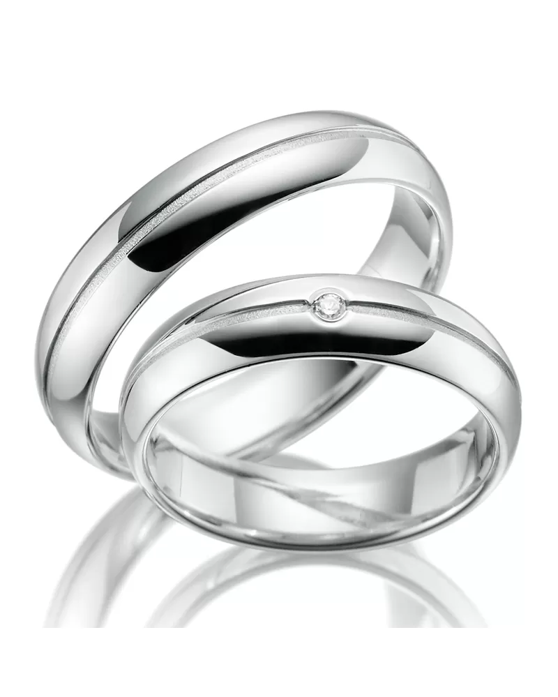 Decentní design těchto snubních prstenů potěší zejména páry, co nemají rády přílišnou okázalost. Snubní prsteny v půlkulatém profilu jsou vyrobeny ze stříbra ryzosti 925/1000 a jejich povrch je zušlechtěn rhodiováním. Rhodium je ušlechtilý drahý kov ze skupiny platinových kovů. Rhodiováním stříbrných šperků galvanickým nanášením tohoto drahého platinového kovu se stává povrch šperku tvrdší, stálejší a odolnější vůči vnějším vlivům jako je mechanický otěr, poškrábání, nabíhání stříbra, lidský pot, kosmetické přípravky a další. Rhodium je antialergické.