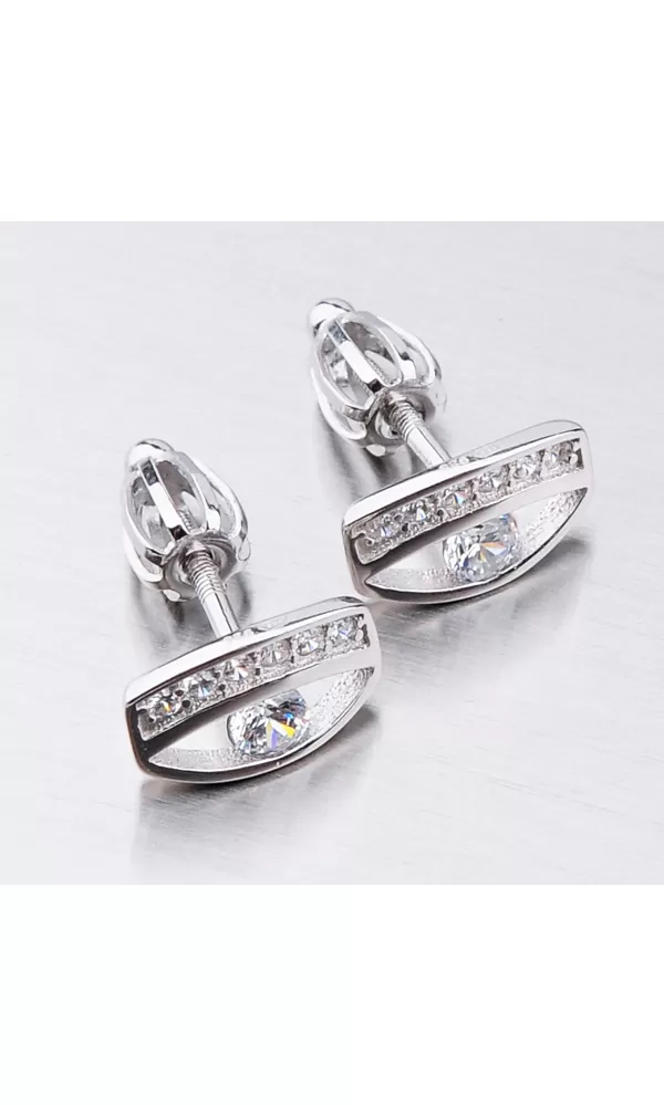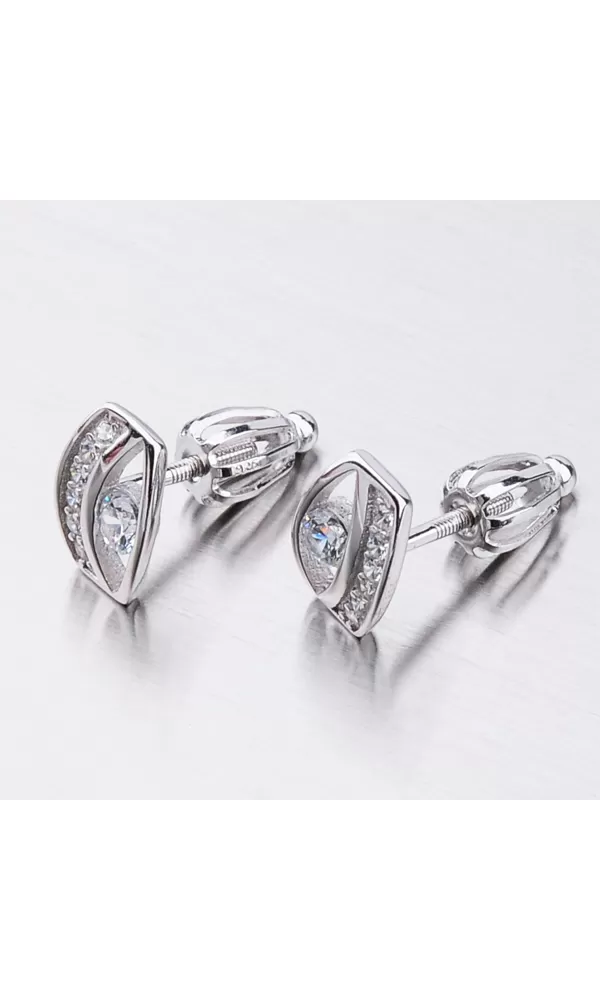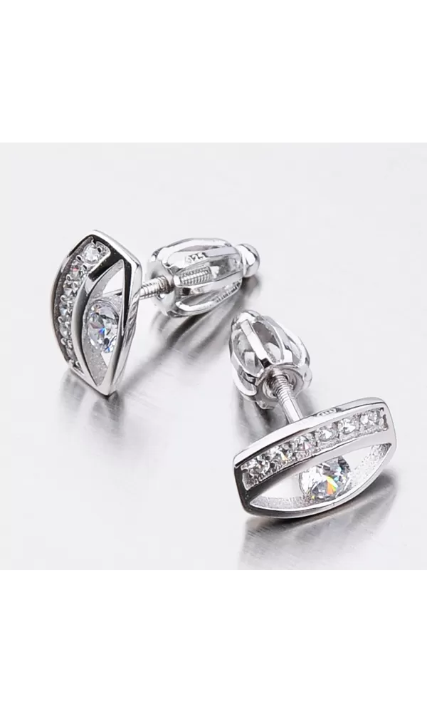 Strieborné náušnice svojim dizajnom pripomínajú oko. Majú oválny tvar a vo vnútri oválu je vsadený zirkón v briliantovom bruse. Nad týmto zirkónom je rad vsadených zirkónov. Nápadité náušnice si môžete natočiť podľa potreby a priania. Po každej budú vyzerať skvele. Zapínajú sa skrutku.