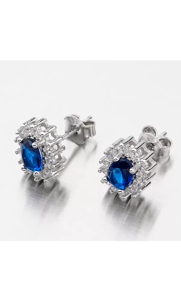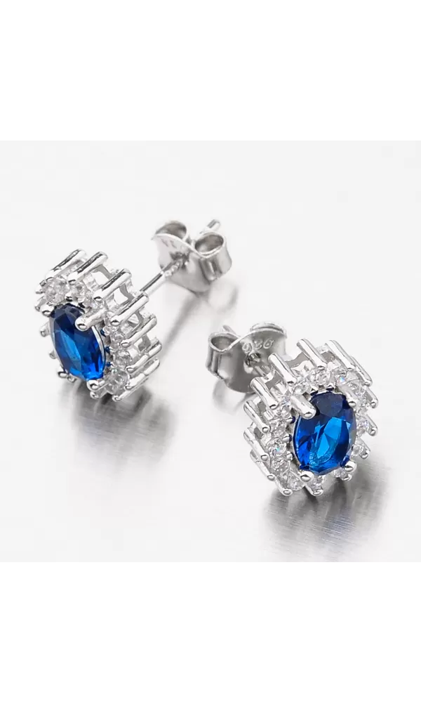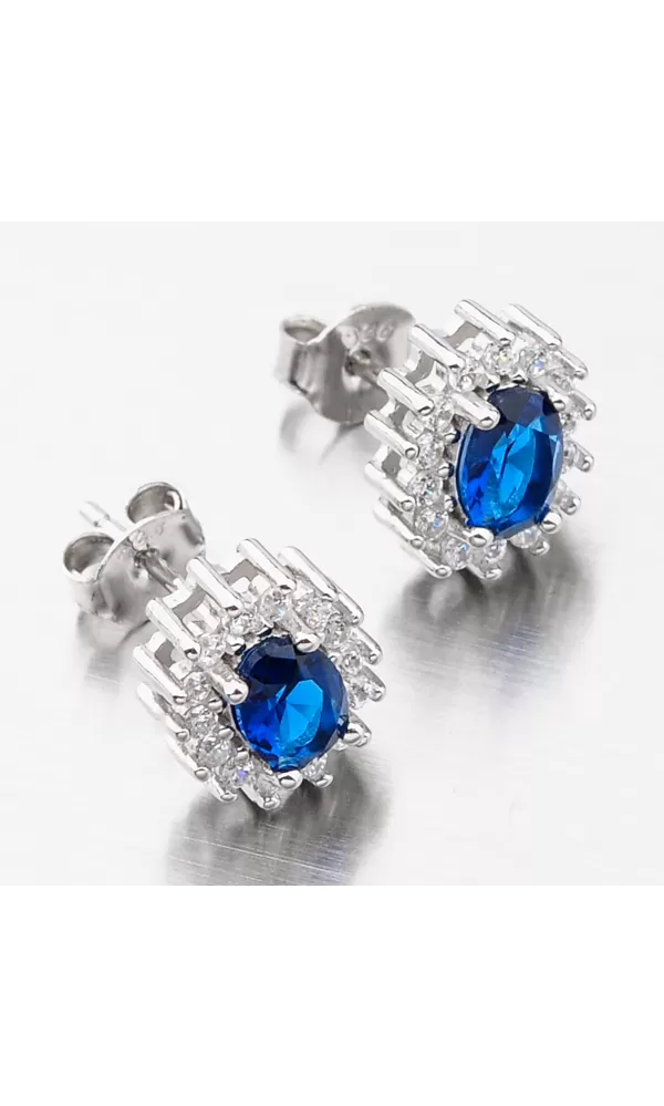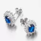 Zaujmite žiarivými náušnicami Tento model náušníc je v oválnom tvare a vo svojom strede majú veľký zirkón v modrej farbe brúsený do tvaru oválu. . Náušnice sa zapínajú na puzety.