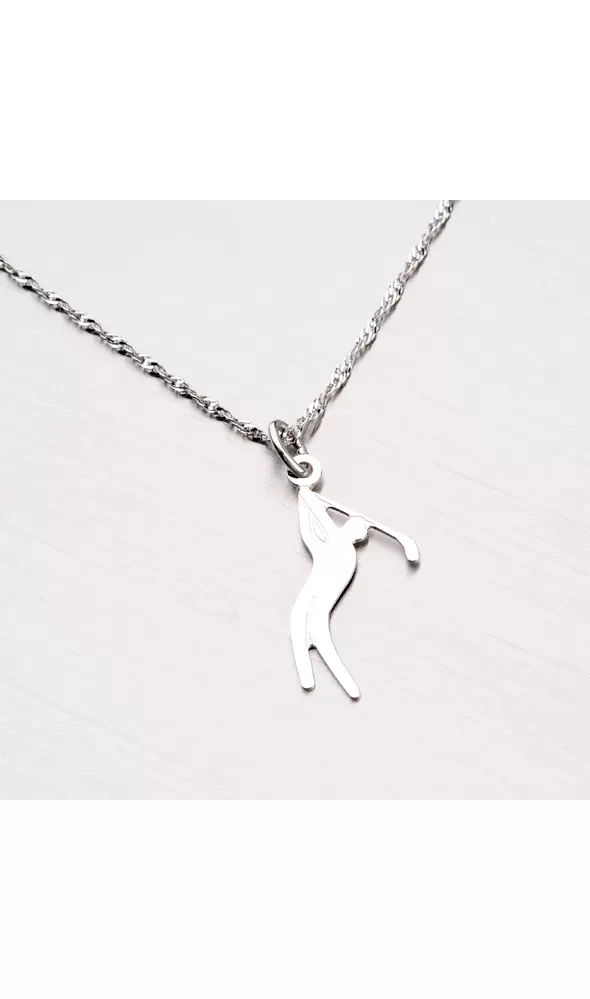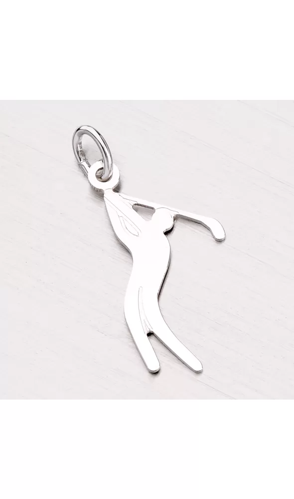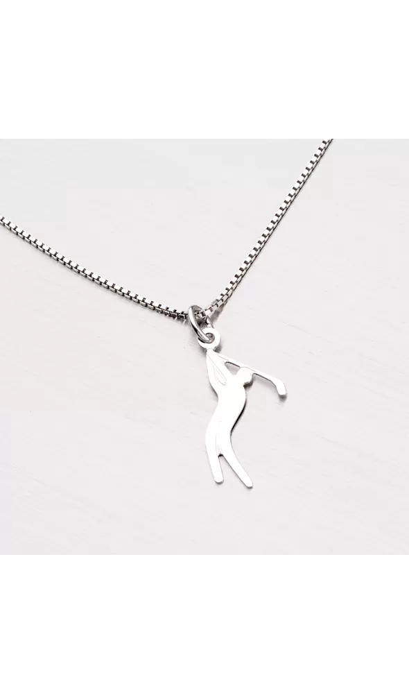 Zaujímavý strieborný prívesok v tvare golfistu, ktorý bude ideálny pre milovníkov golfu. Prívesok zobrazuje golfistu s palicou po odpálení loptičky do jamky.