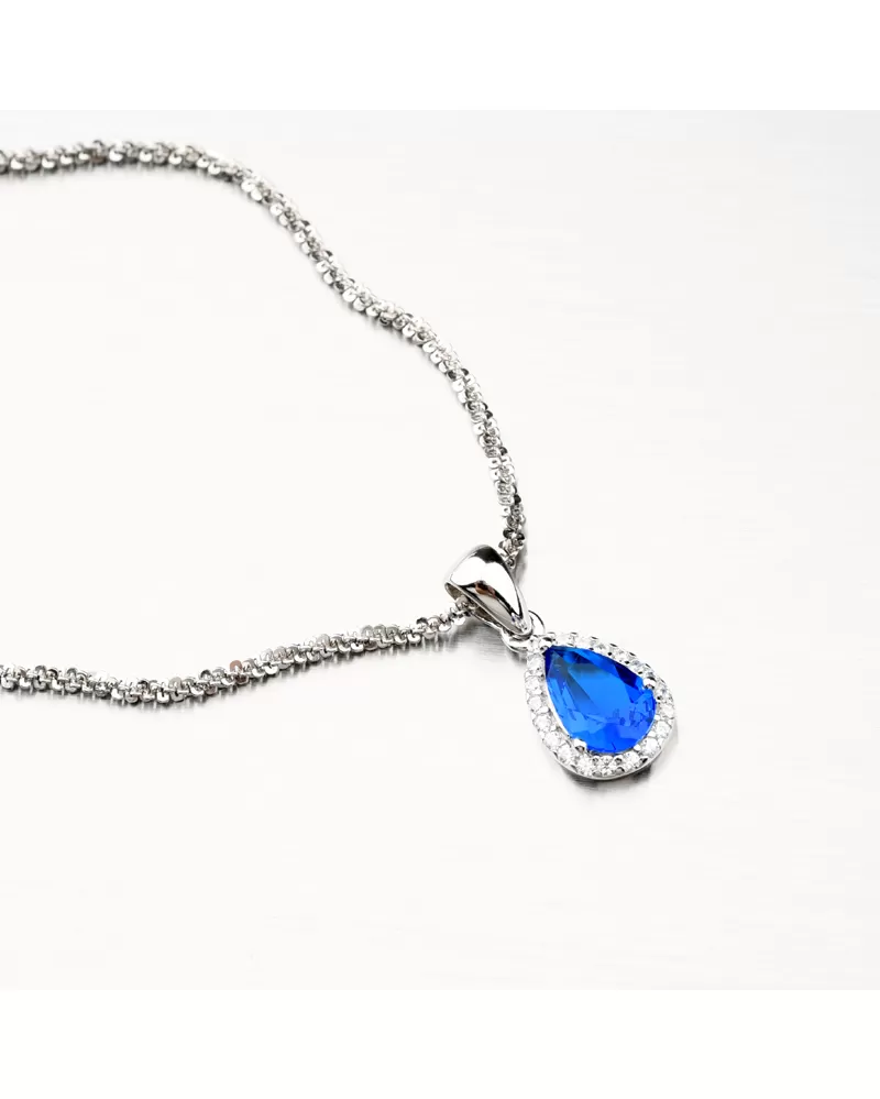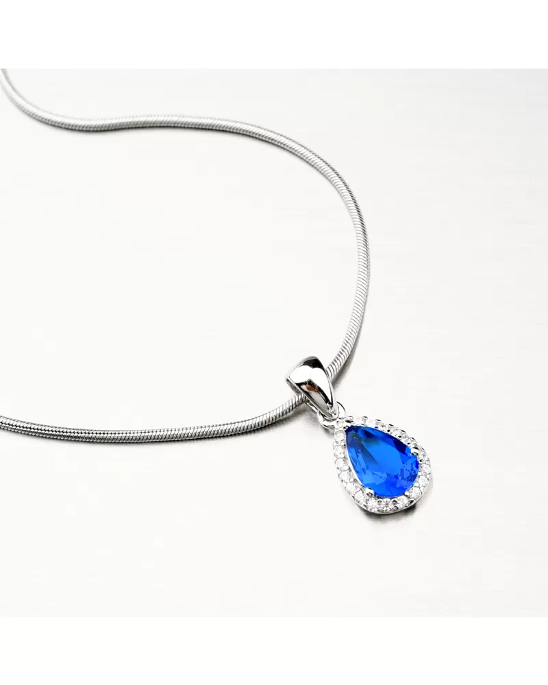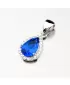 Úchvatný prívesok s výrazným tmavomodrým zirkónom. V strede prívesku je modrý zirkón v tvare slzy a okolo neho po celom obvode sú osadené drobné okrúhle zirkóny. Drobné zirkóny sú vybrúsené do briliantového brusu, ktorý zaisťuje maximálnu brilanciu vybrúsených facet, dokonale odráža svetlo a neuveriteľne žiari z každého uhla pohľadu. Prívesok je veľmi ľahký a bude maximálne pohodlný na celodenné nosenie.