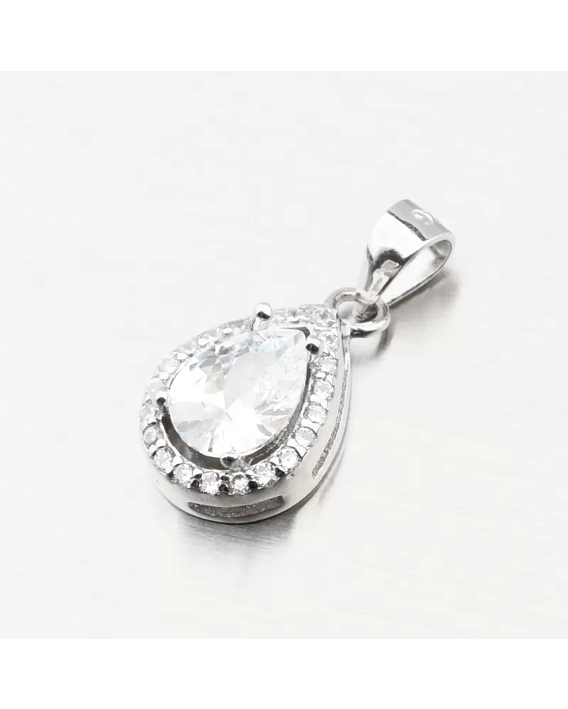 Elegantný dámsky strieborný prívesok, ktorý je v tvare slzičky. Prívesku dominuje zirkón v tvare slzy a potom sú okolo neho po celom obvode vsadené biele zirkóny briliantového brusu. Tento brús zaisťuje maximálnu brilanciu vybrúsených facet, dokonale odráža svetlo a neuveriteľne žiari z každého uhla pohľadu.